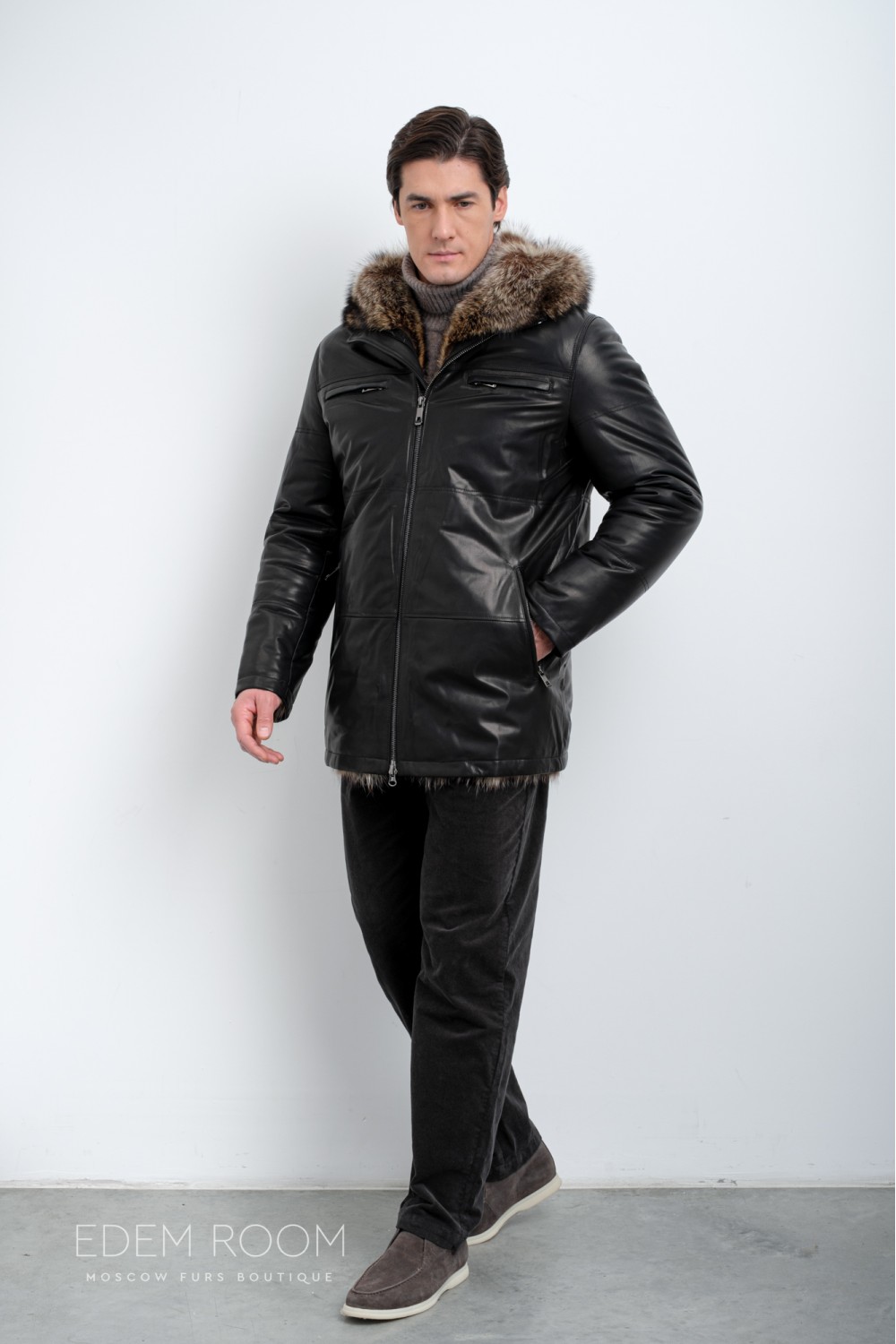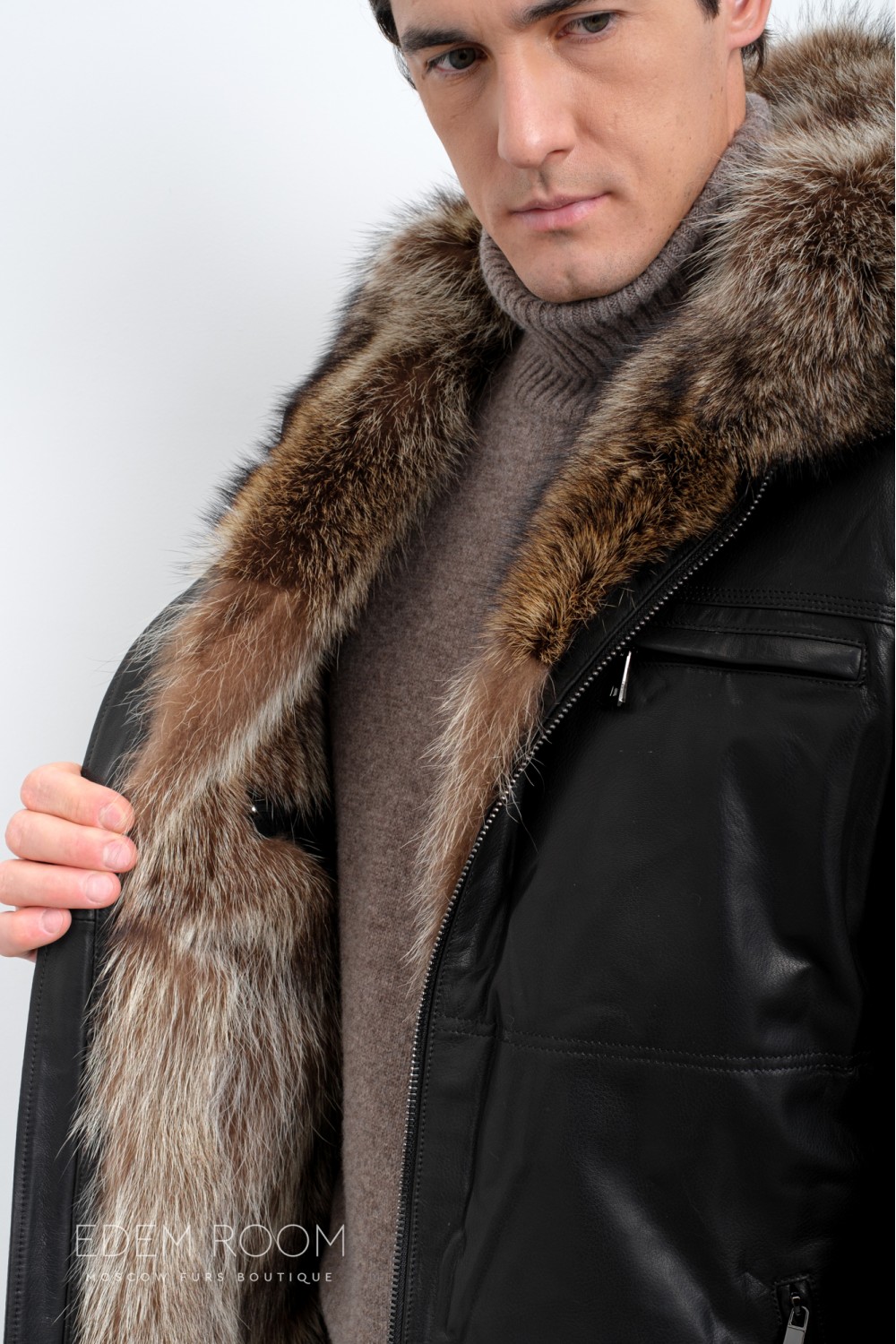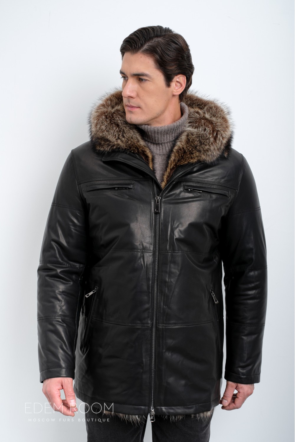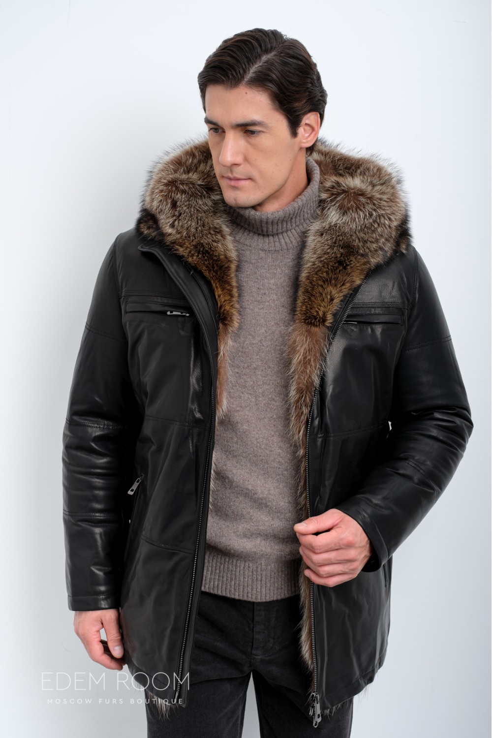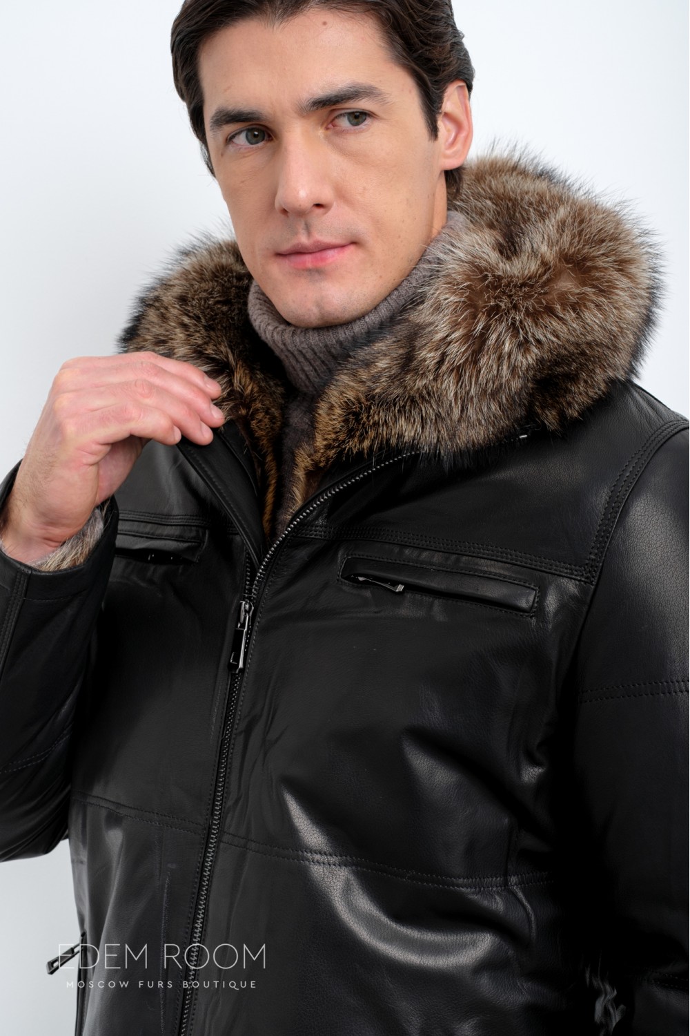 Дублёнка мужская на мехе енота IG-23013-2-EN