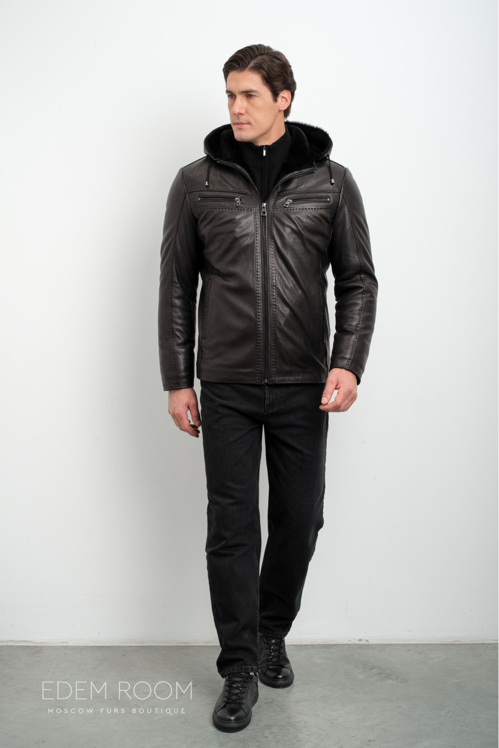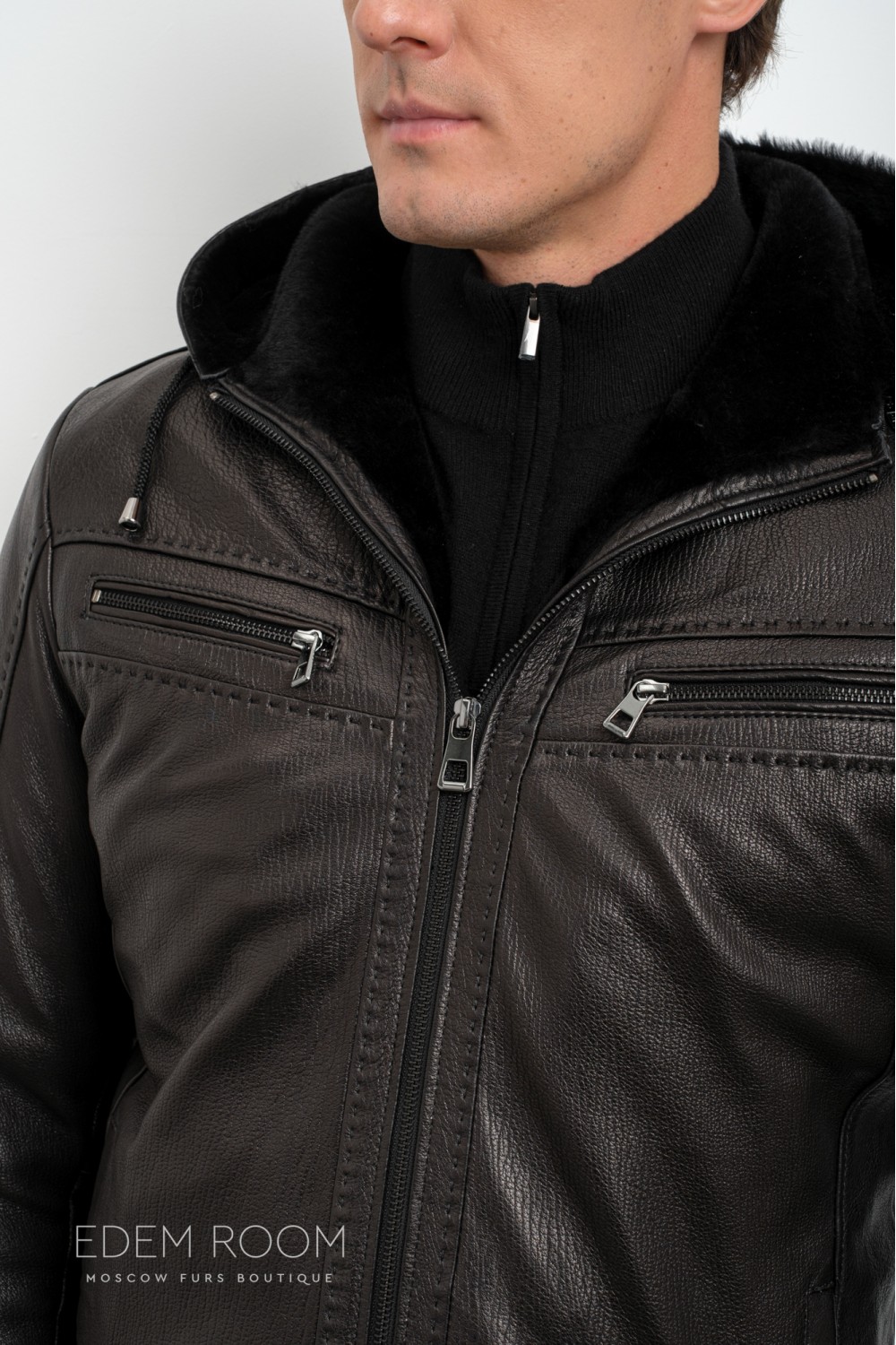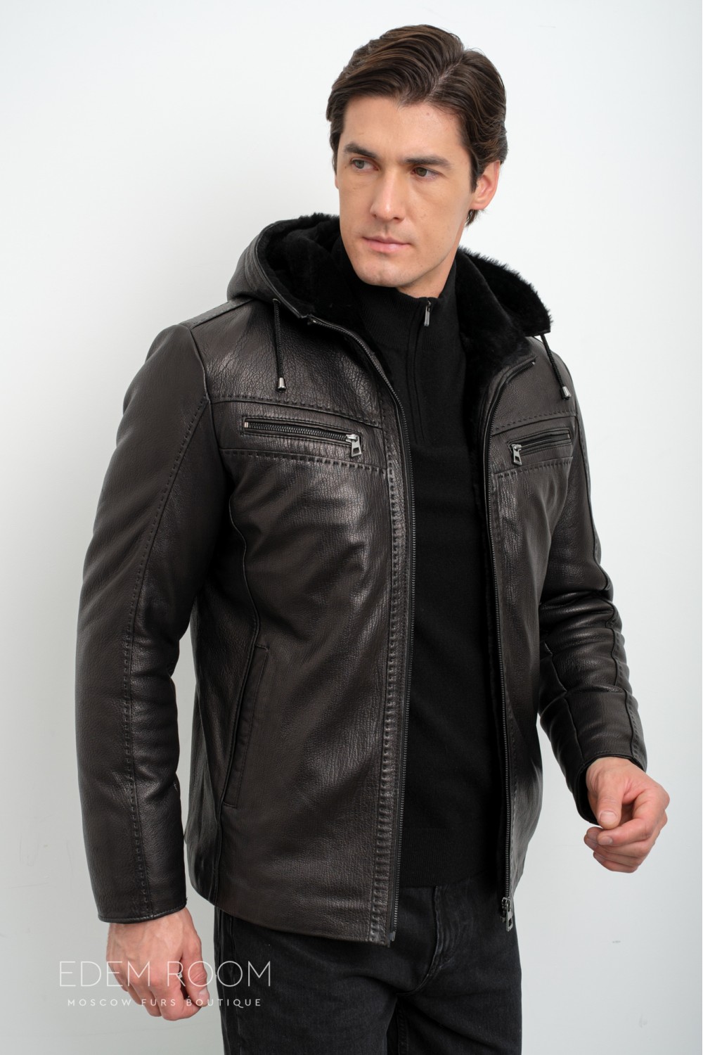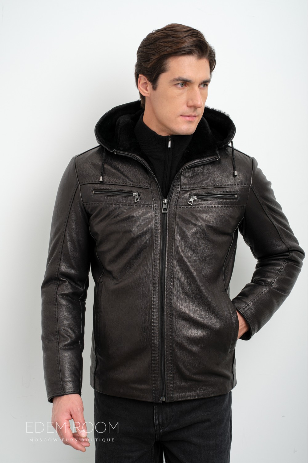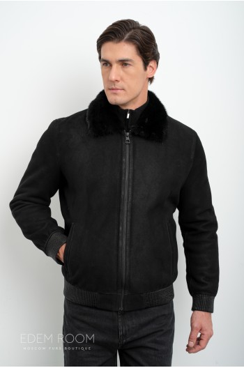 короткая куртка - дублёнка с капюшоном RM-1835-2-CH