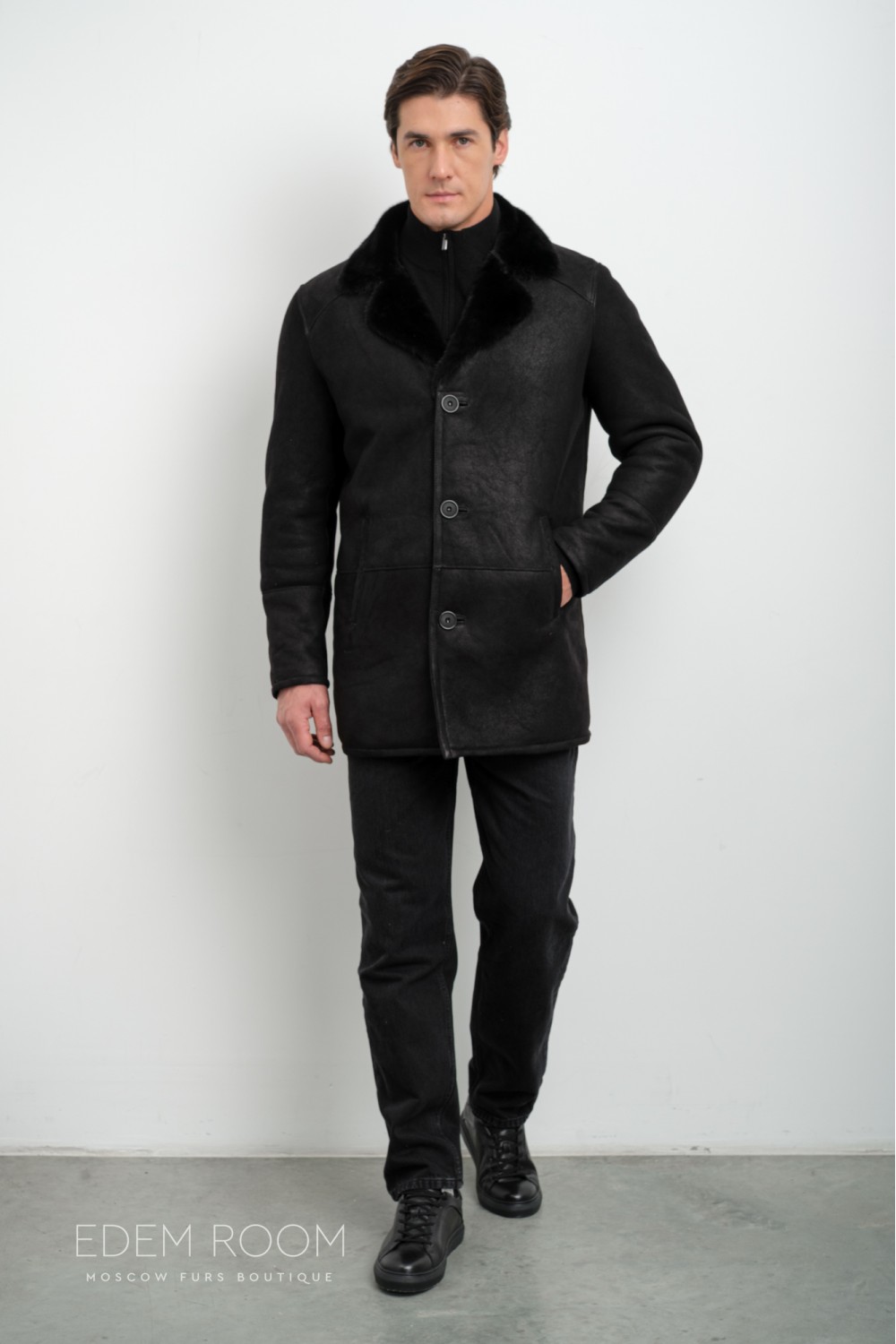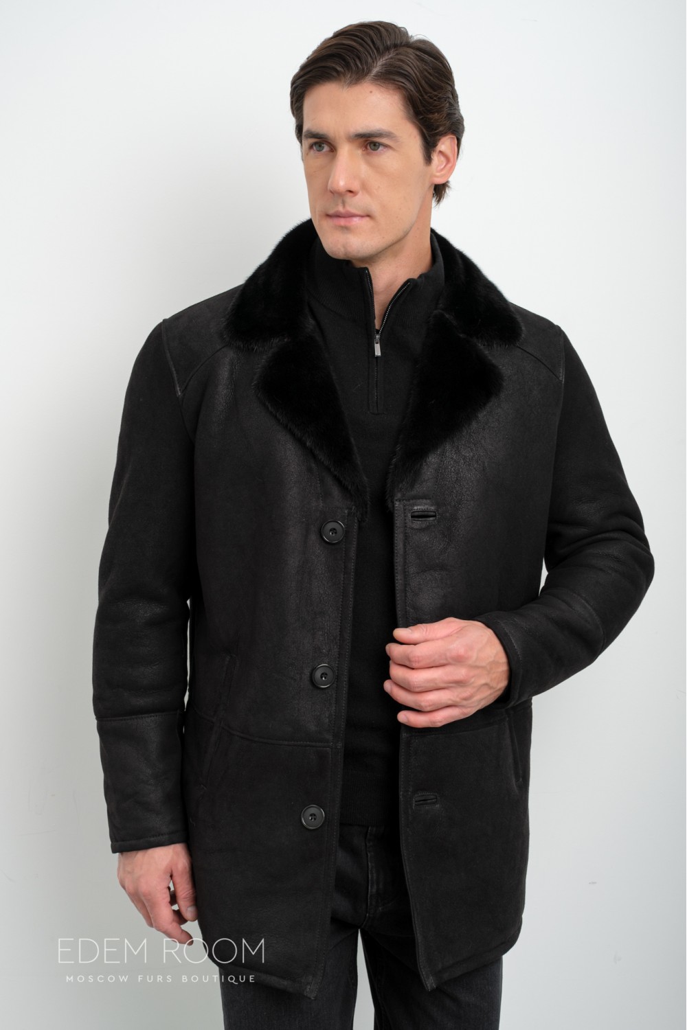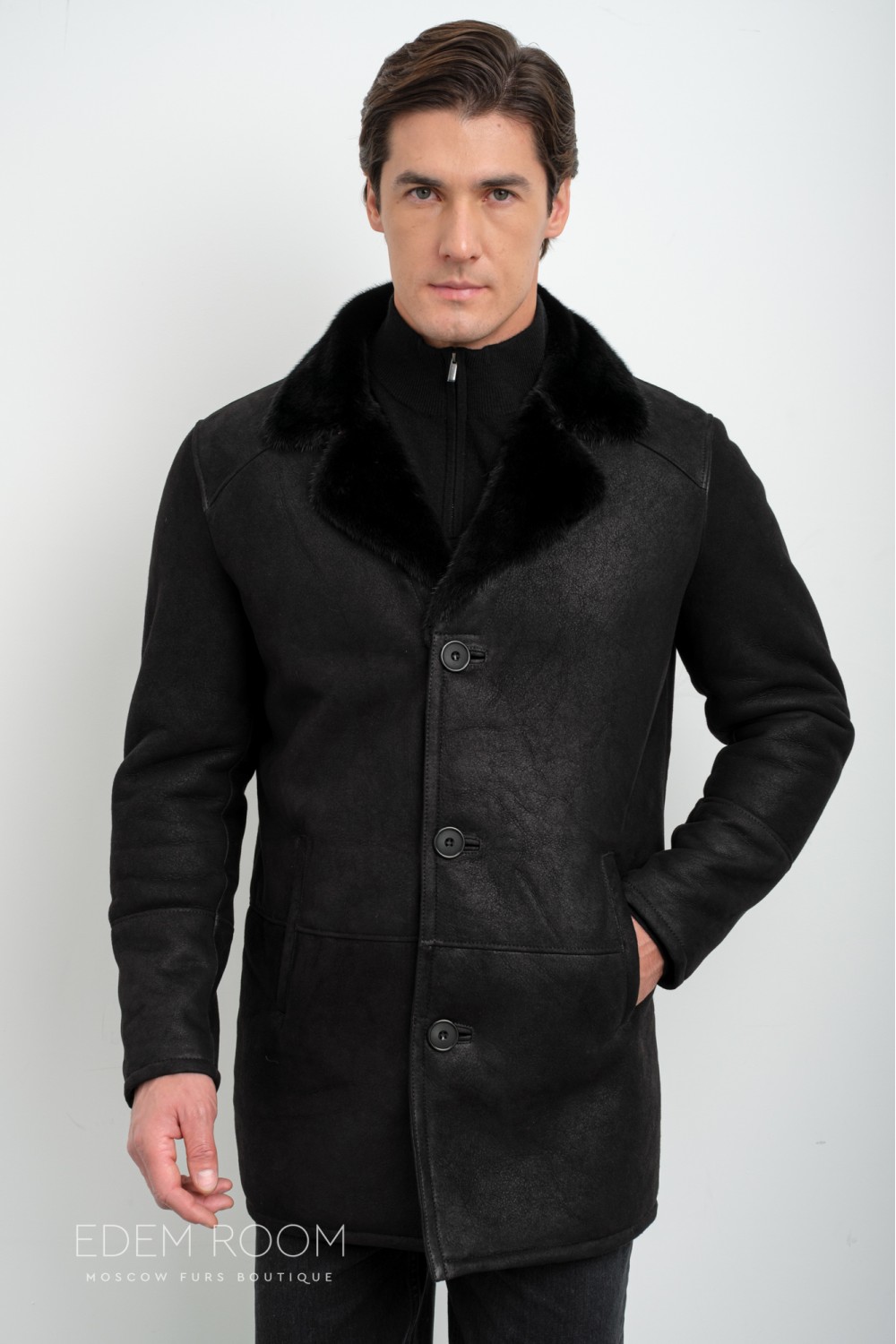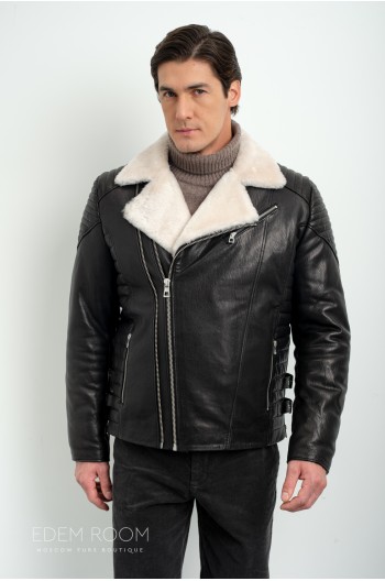 Дублёнка мужская с воротником из меха норки RM-2011-CH
