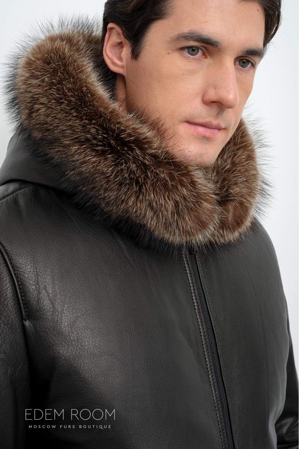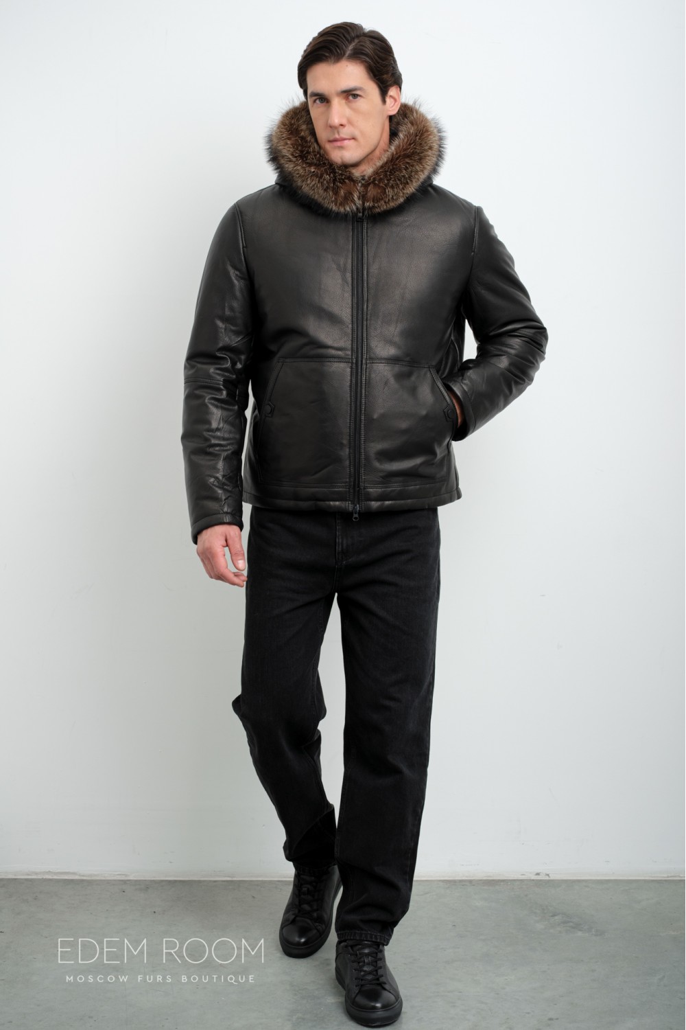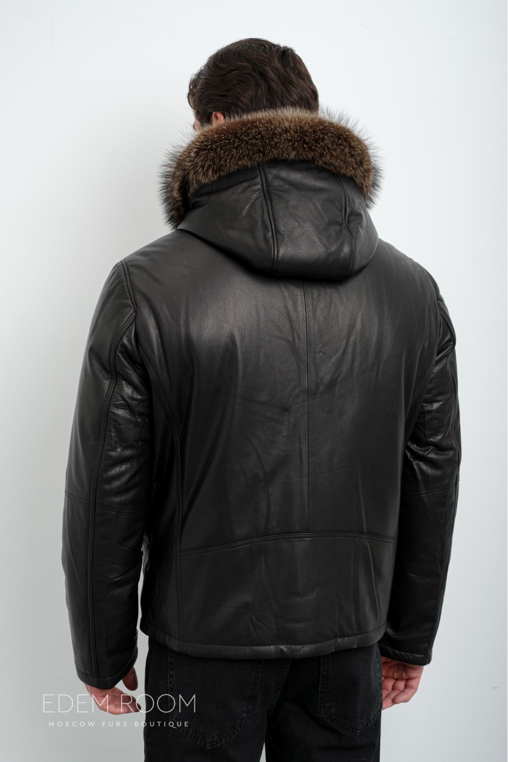 кожаный пуховик с капюшоном С-8872-2-CH