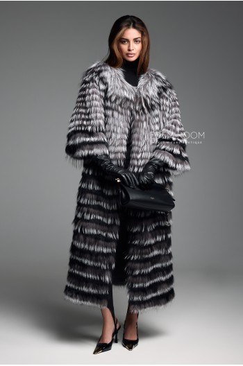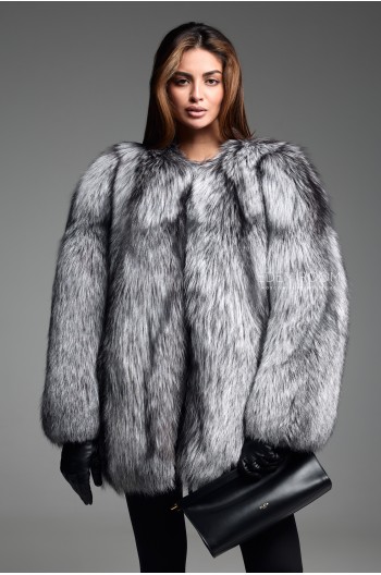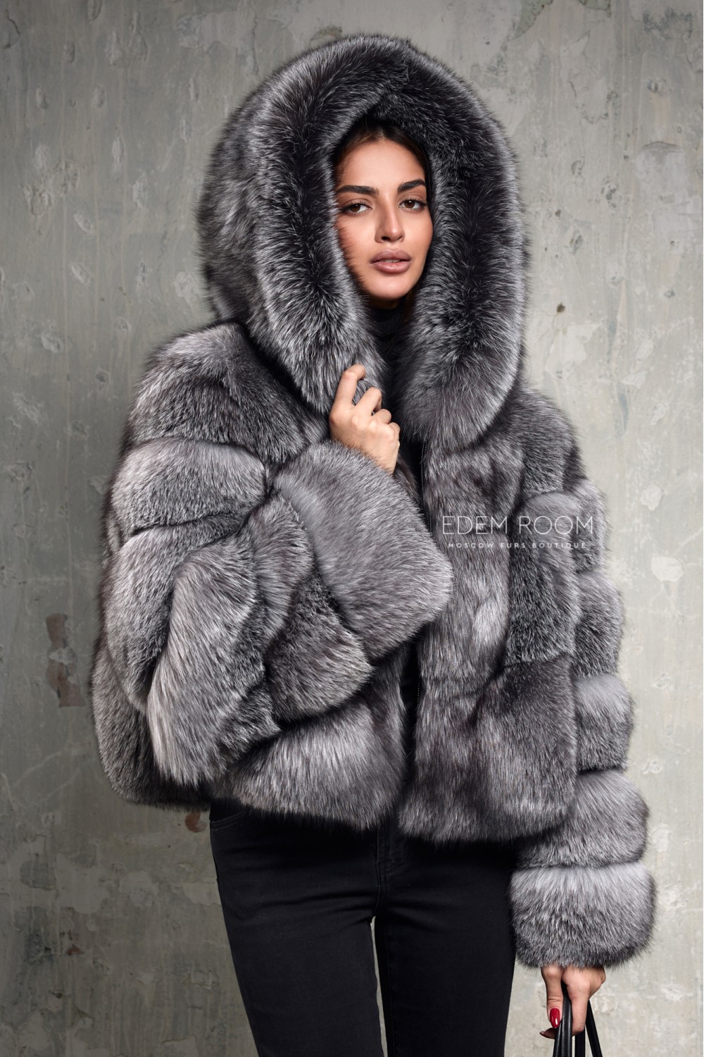 короткая шуба из лисы с капюшоном NR-2025-2-50-CHE