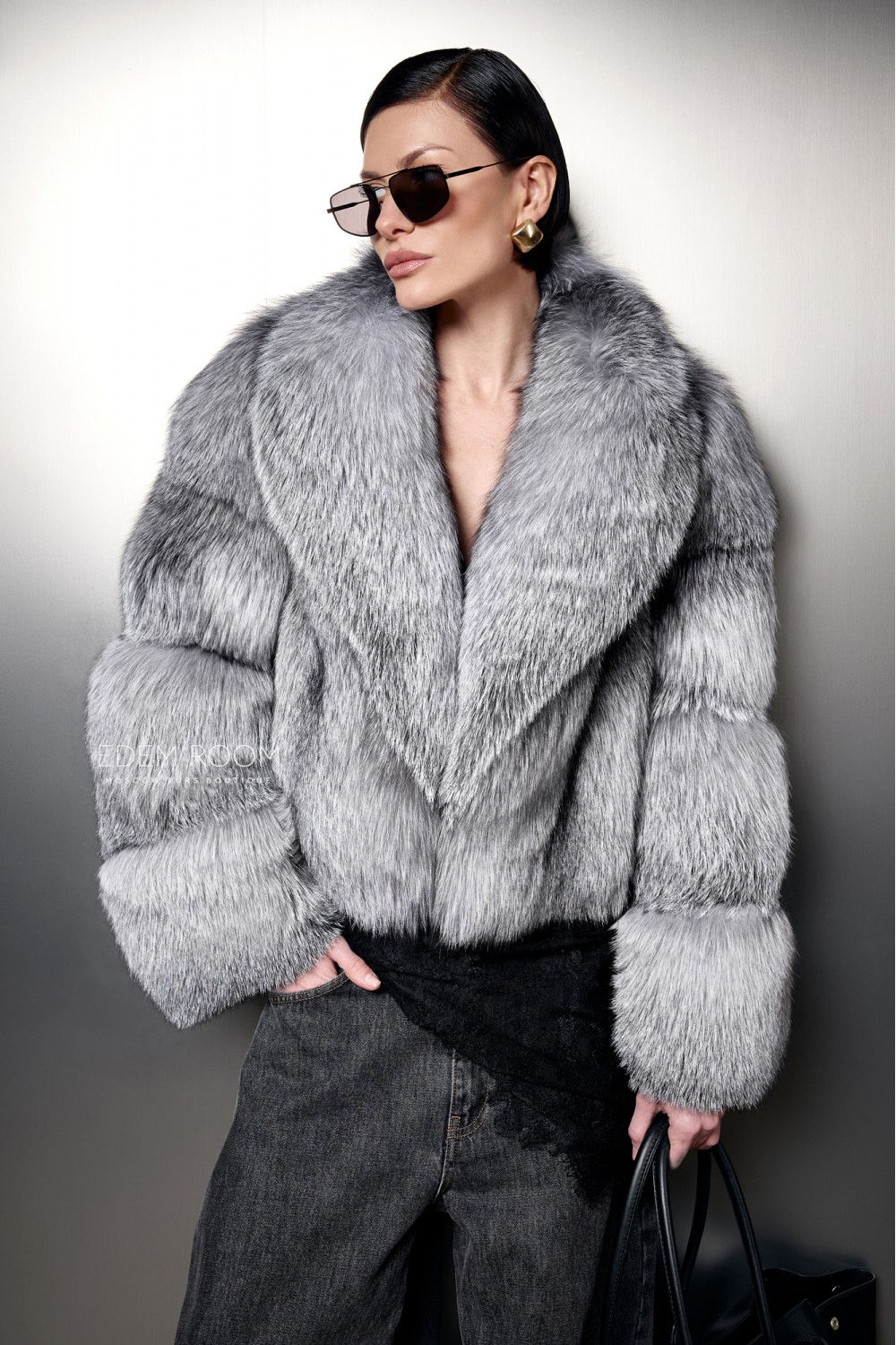 укороченная шуба из серебристой лисы RE-407-50-CH