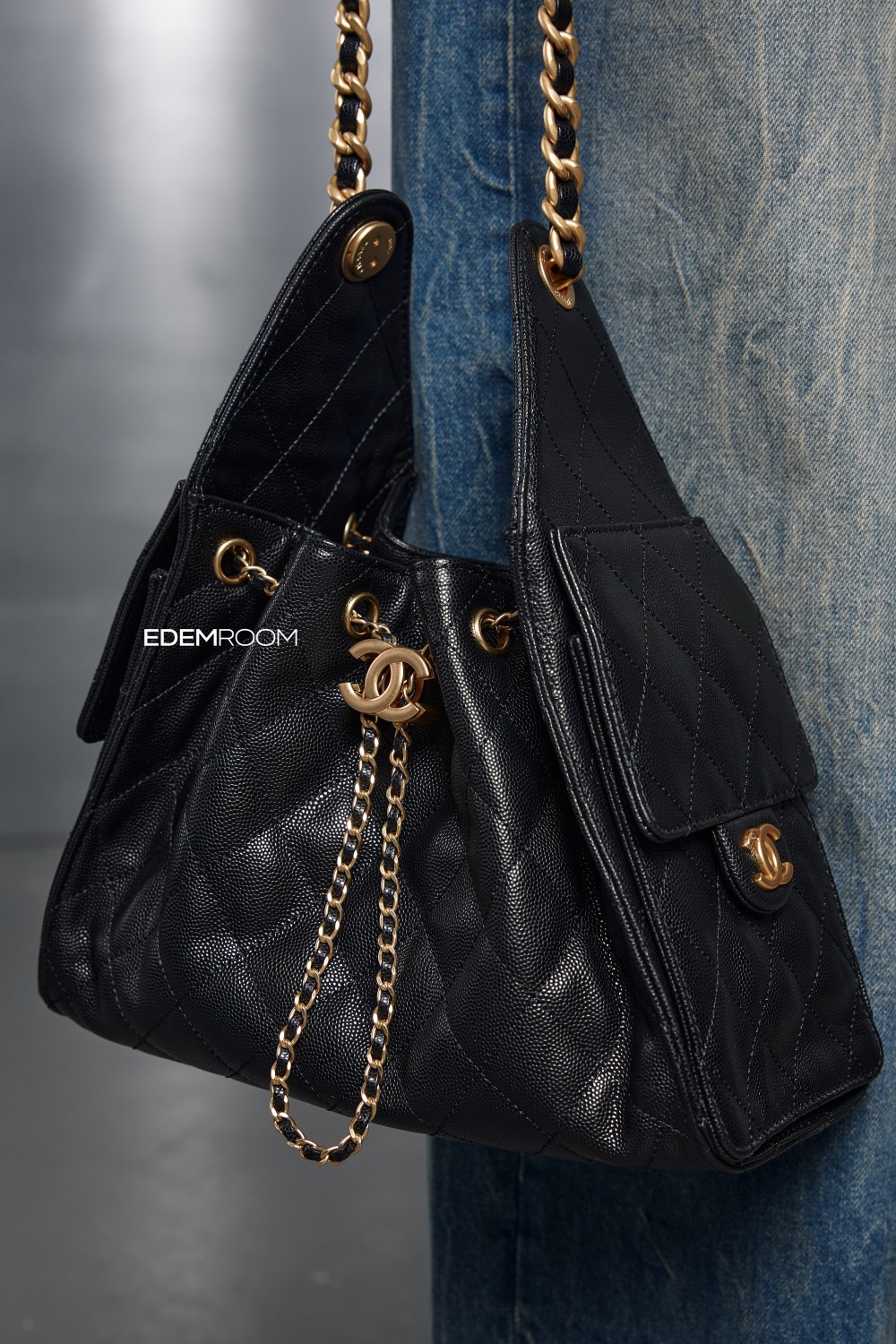 чёрная сумка Chanel из кожи икра SUM-101-CH