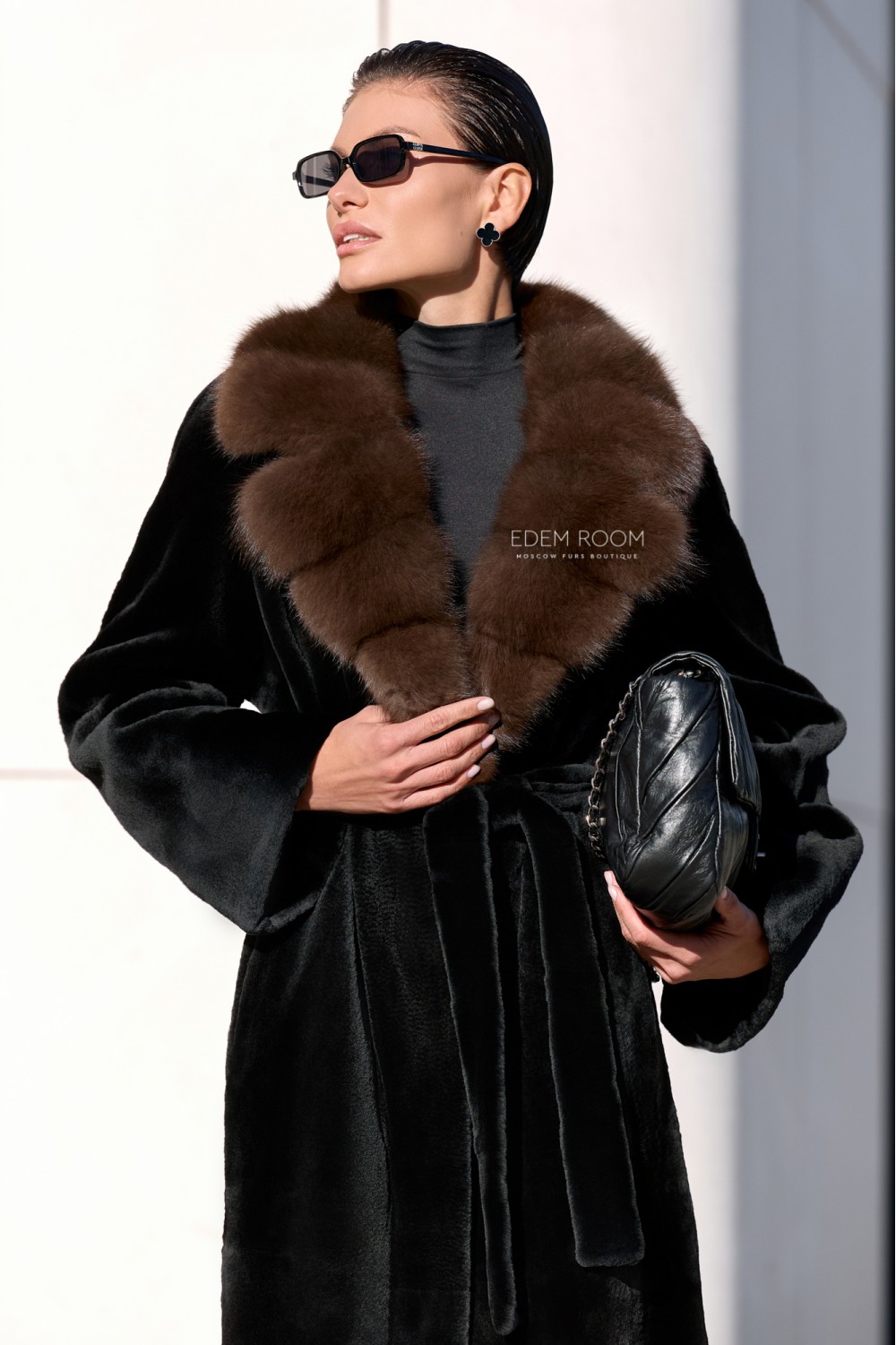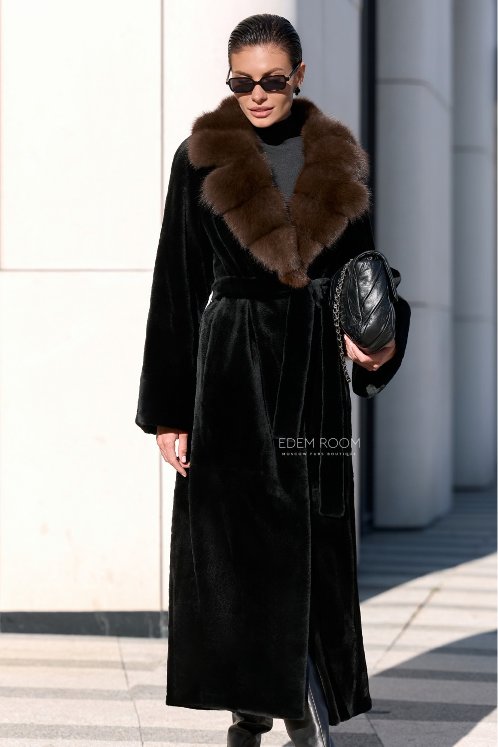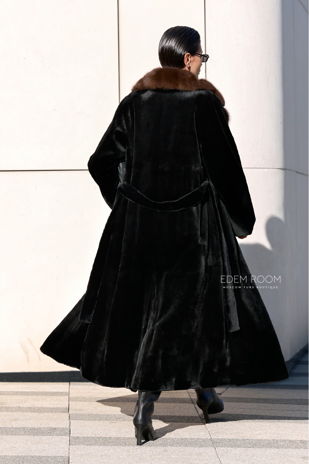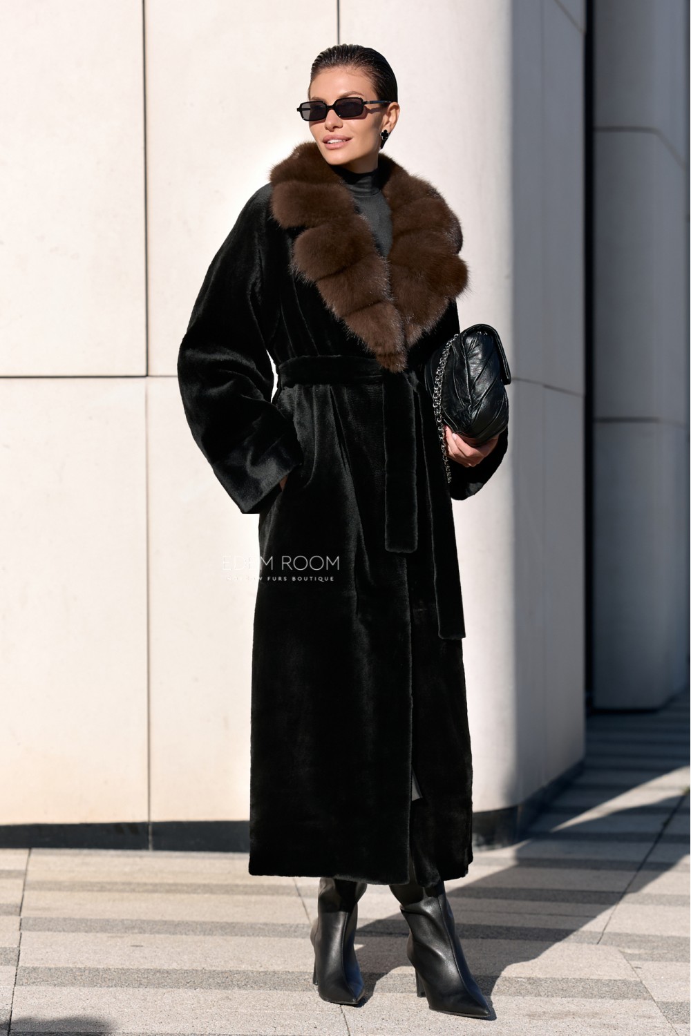 шуба из щипаной норки с куницей AN-728-130-CH-N