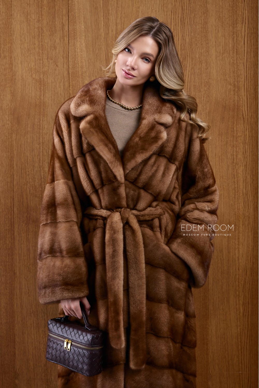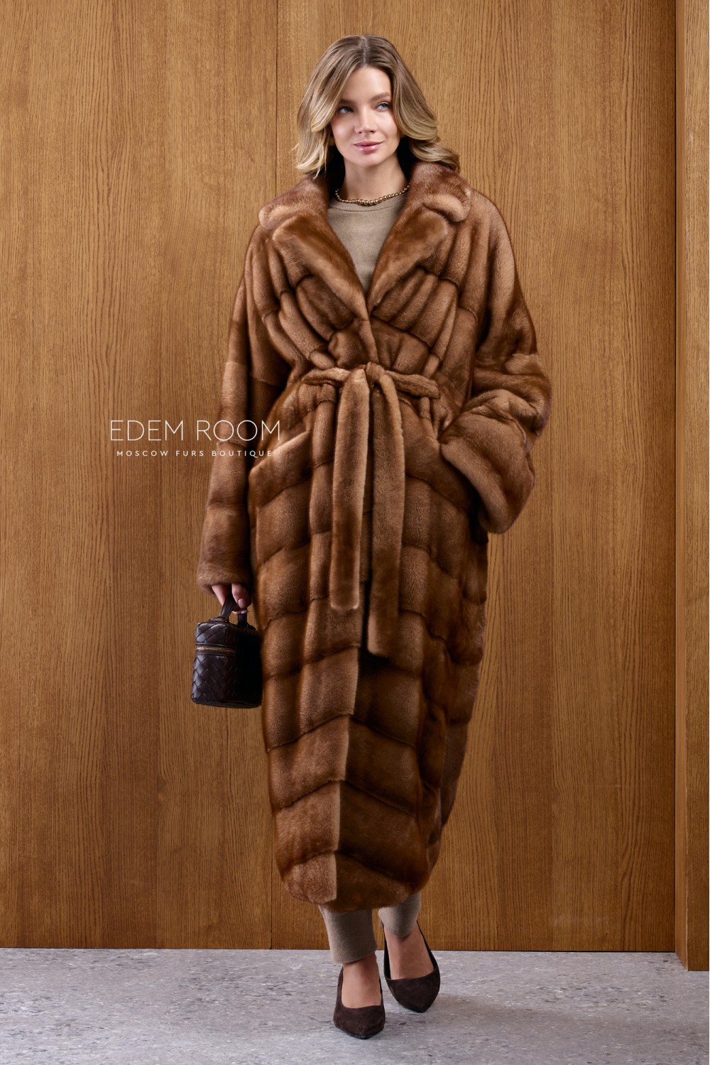 длинная шуба из норки под пояс AN-18024-130-ZL