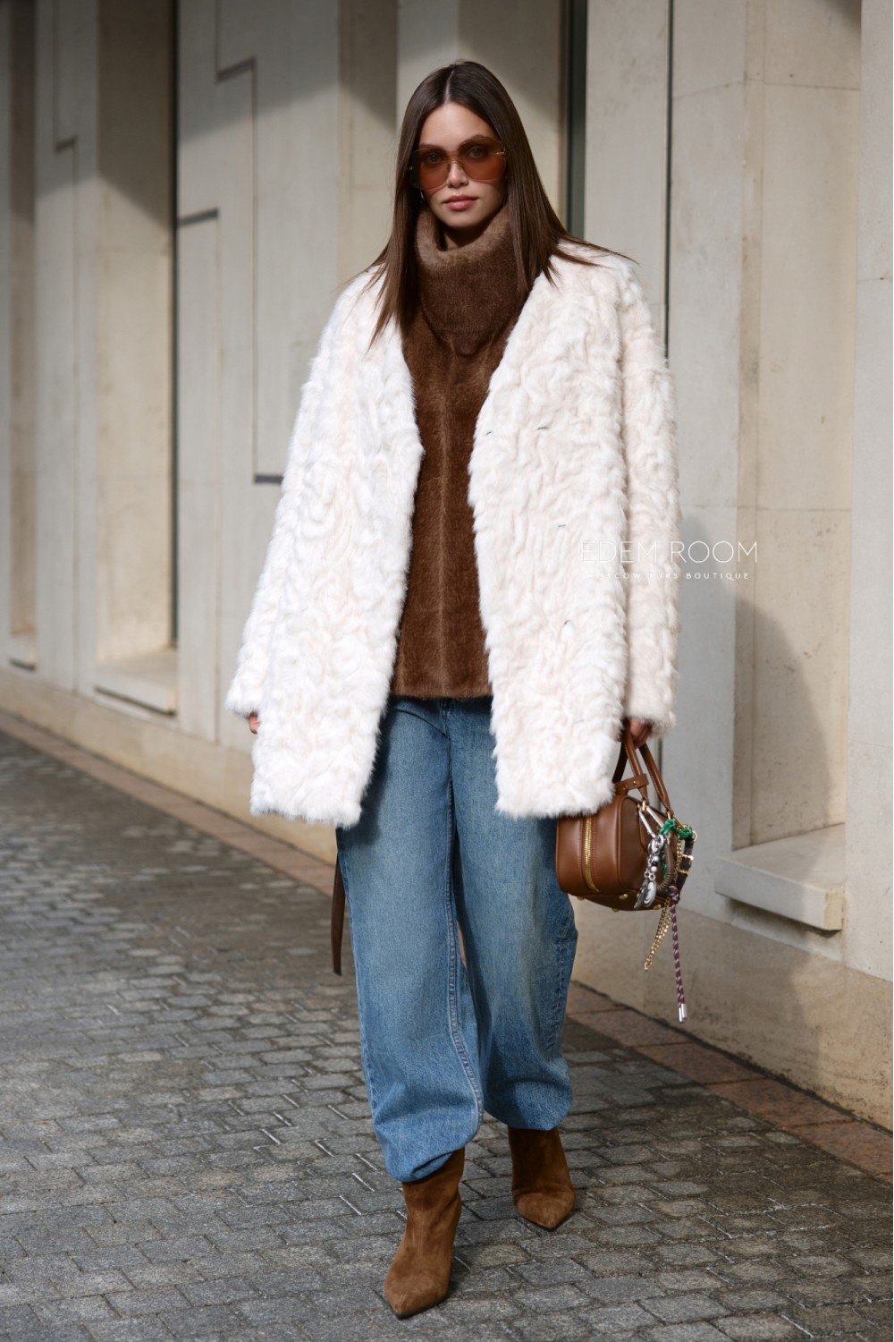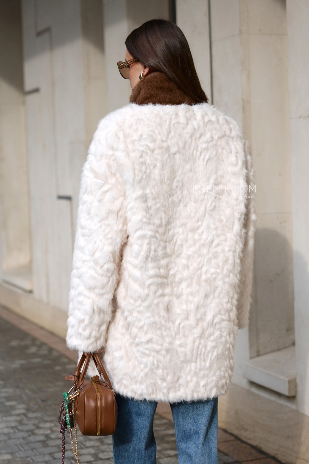 светлая шуба из эко - меха с манишкой SM-2537-85-SL-KG