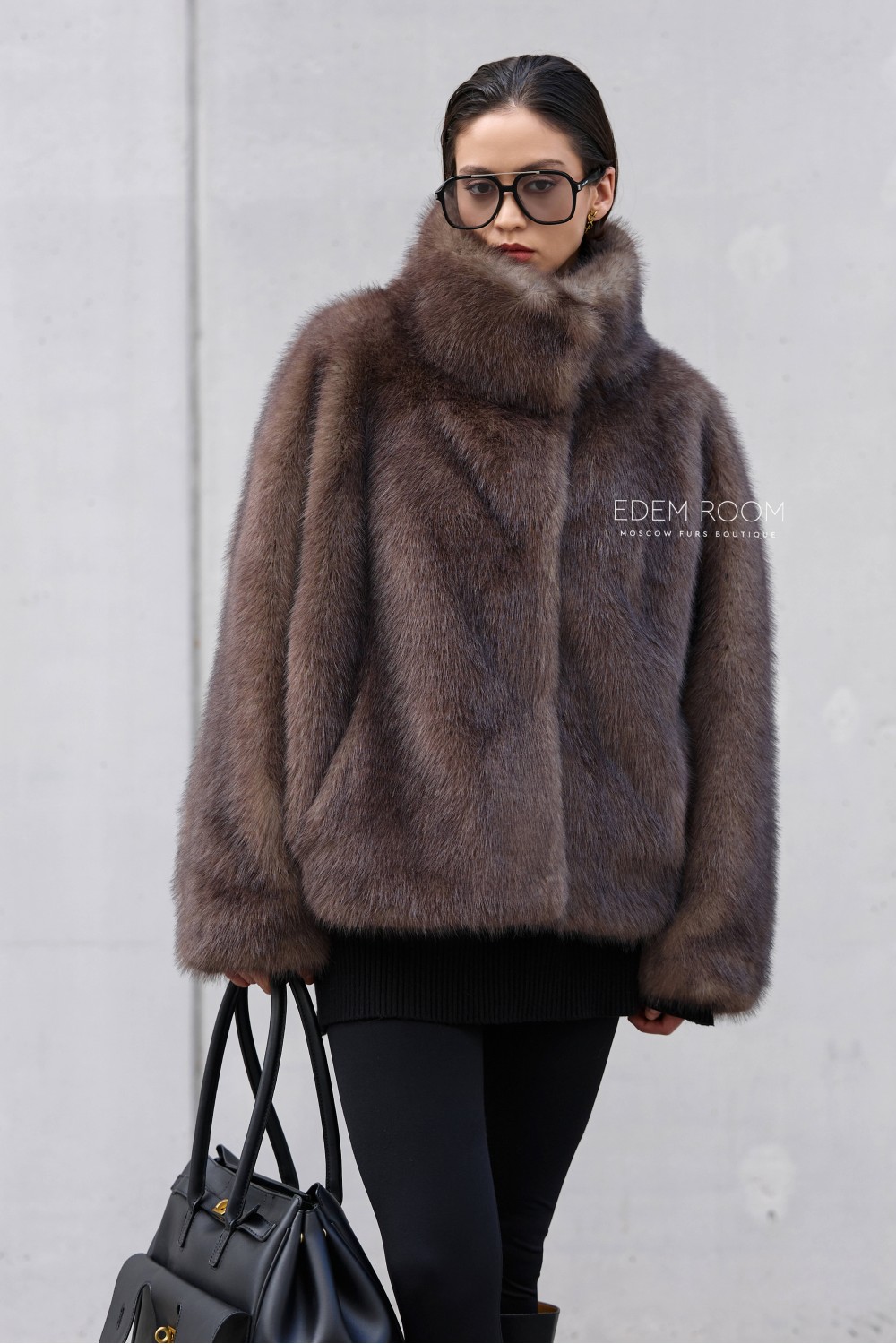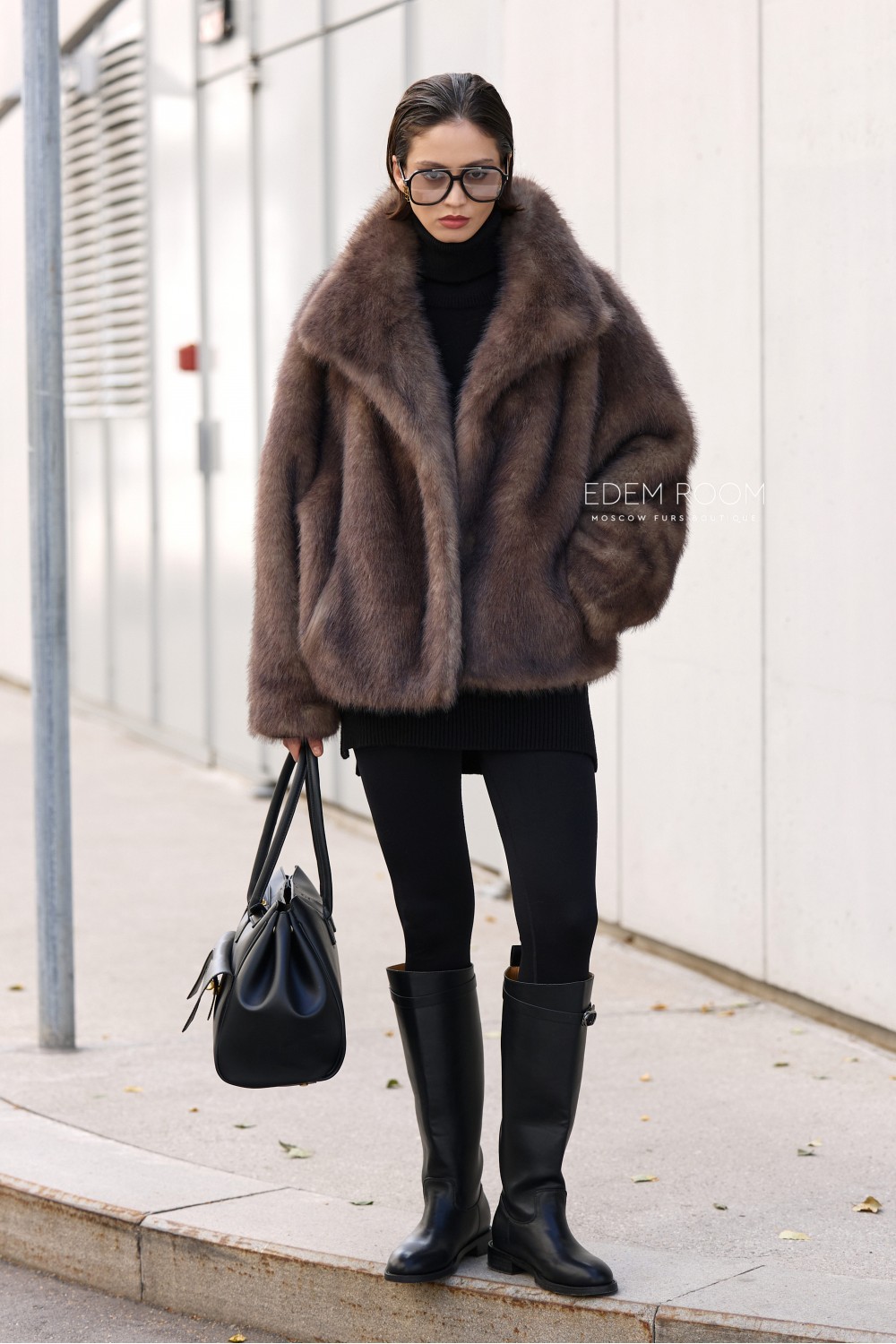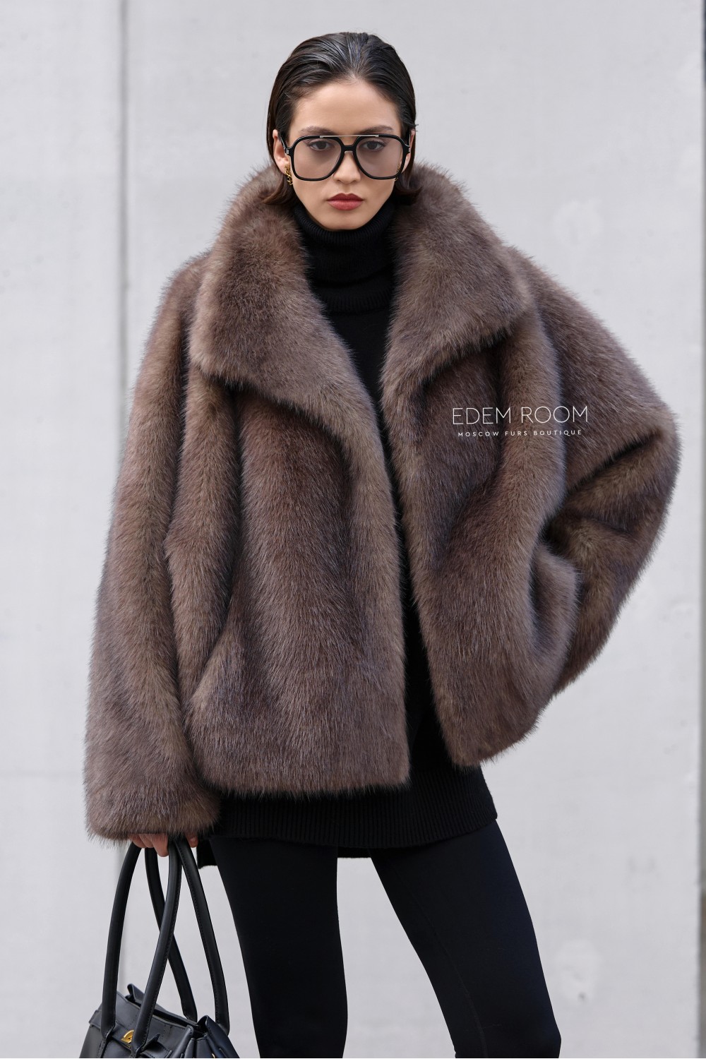 куртка из эко меха под песец SM-2415-1-60-BR-SB