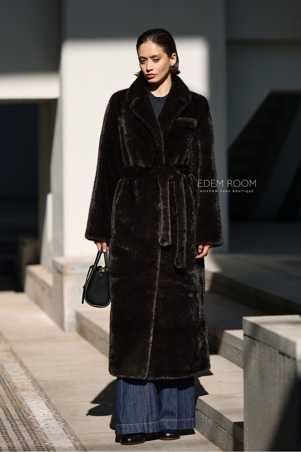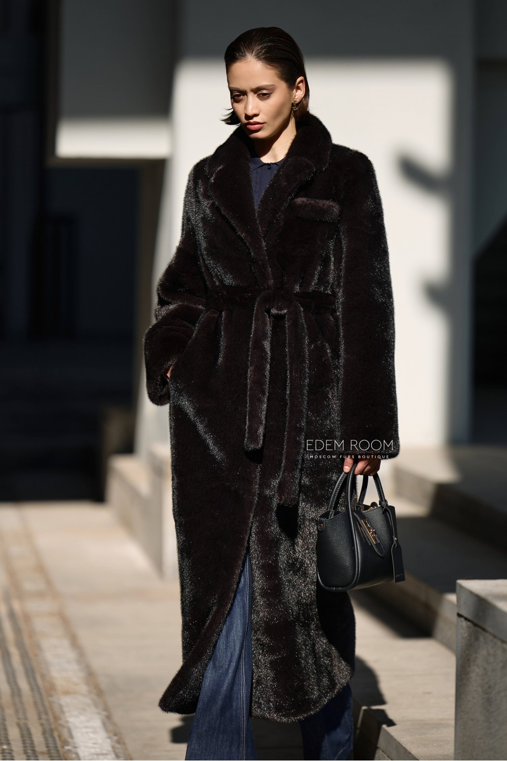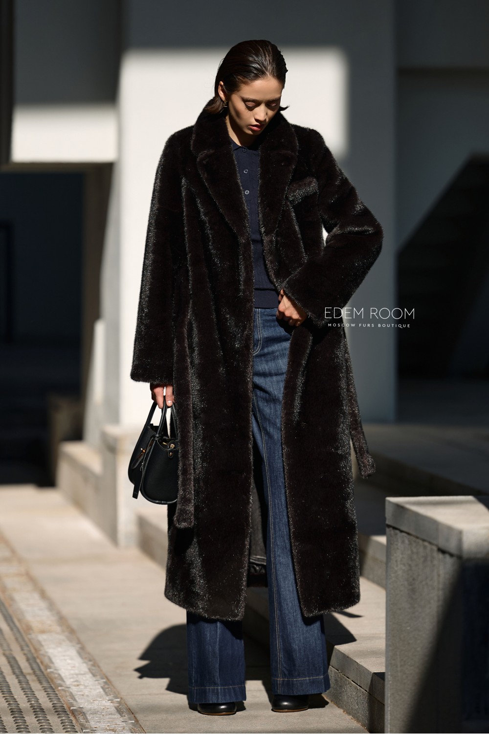 стильная шуба из эко меха под норку SM-2522-125-BK