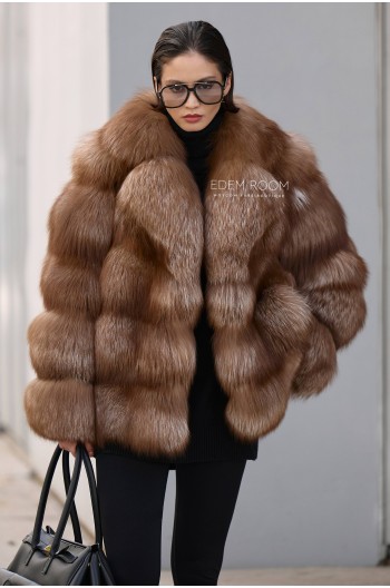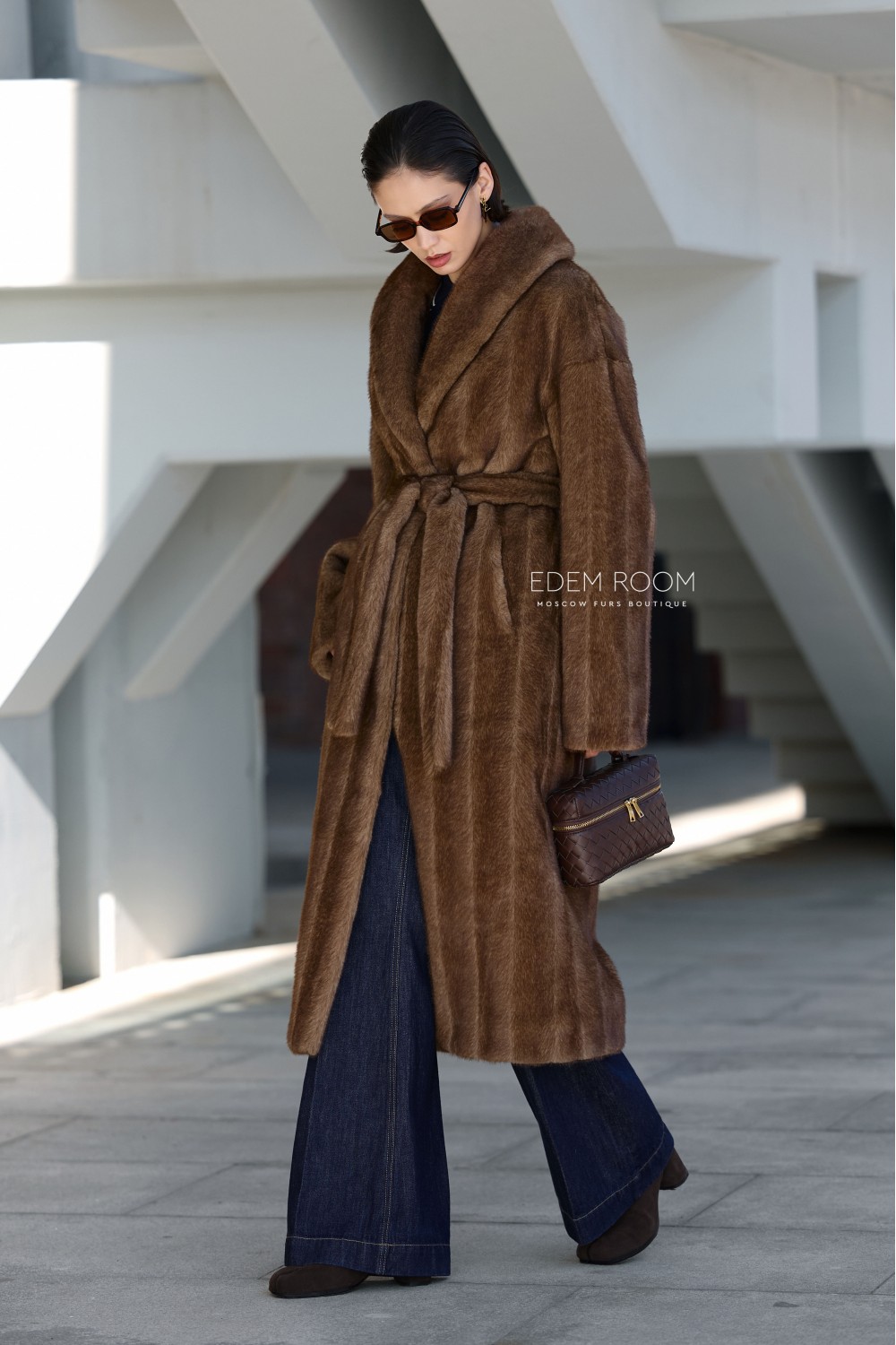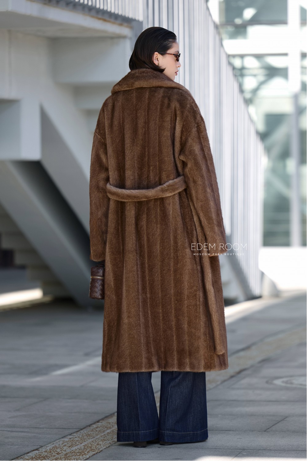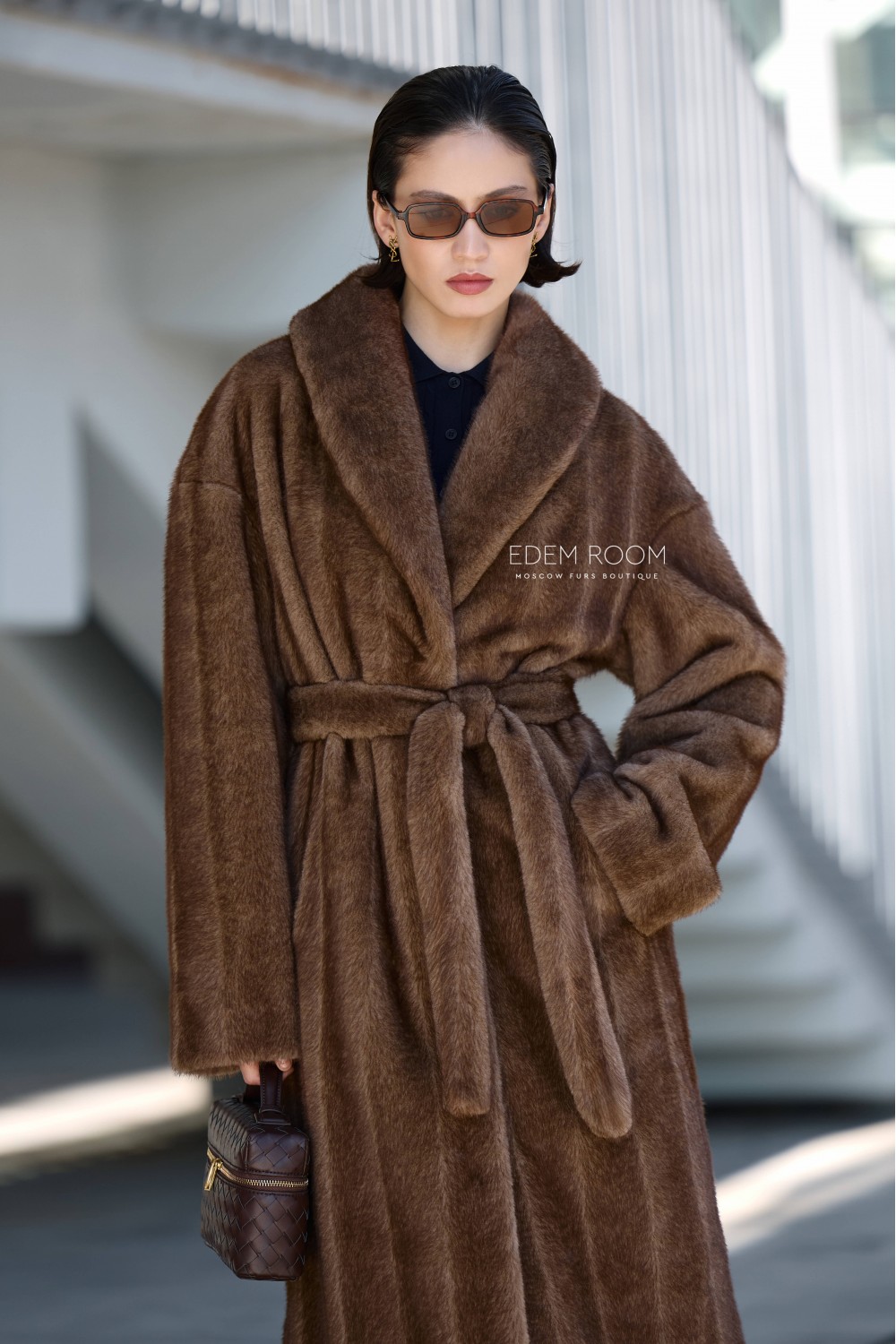 шуба из эко меха - воротник шаль SM-2519-120-SV-SB