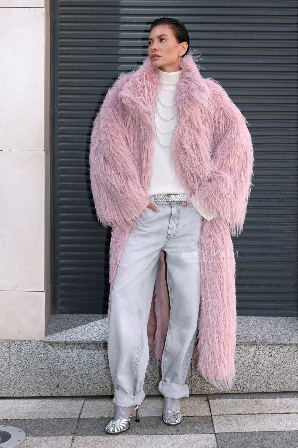 длинная шуба из из эко - страуса PL-2414-1-130-P