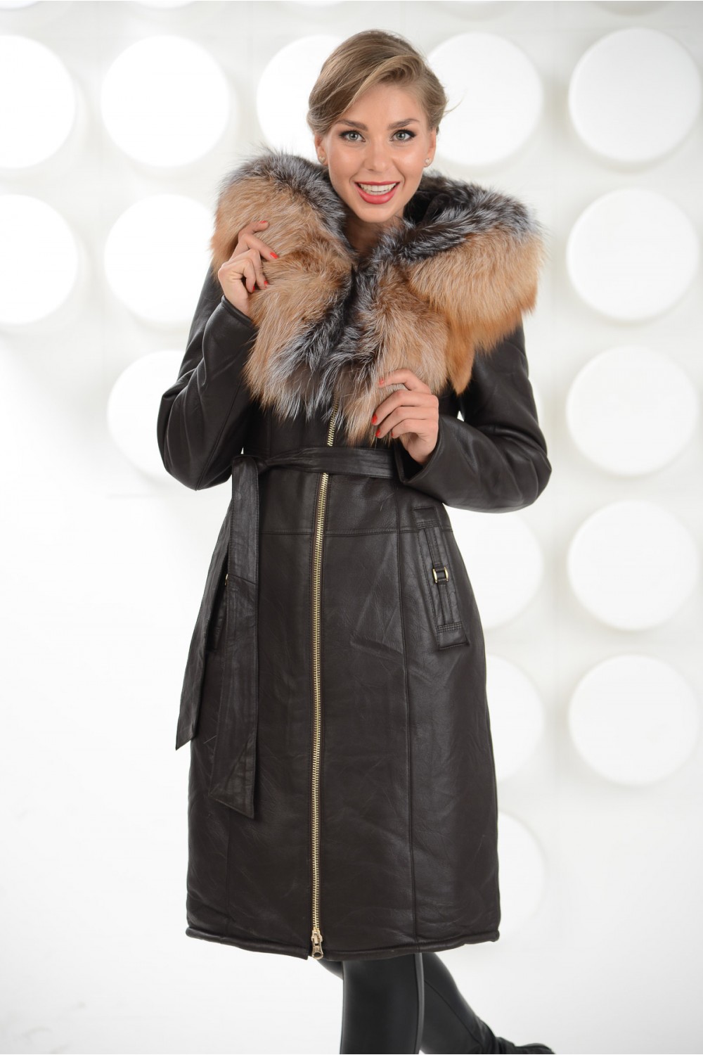 Элегантная женская дублёнка с пышным воротником 15039-K