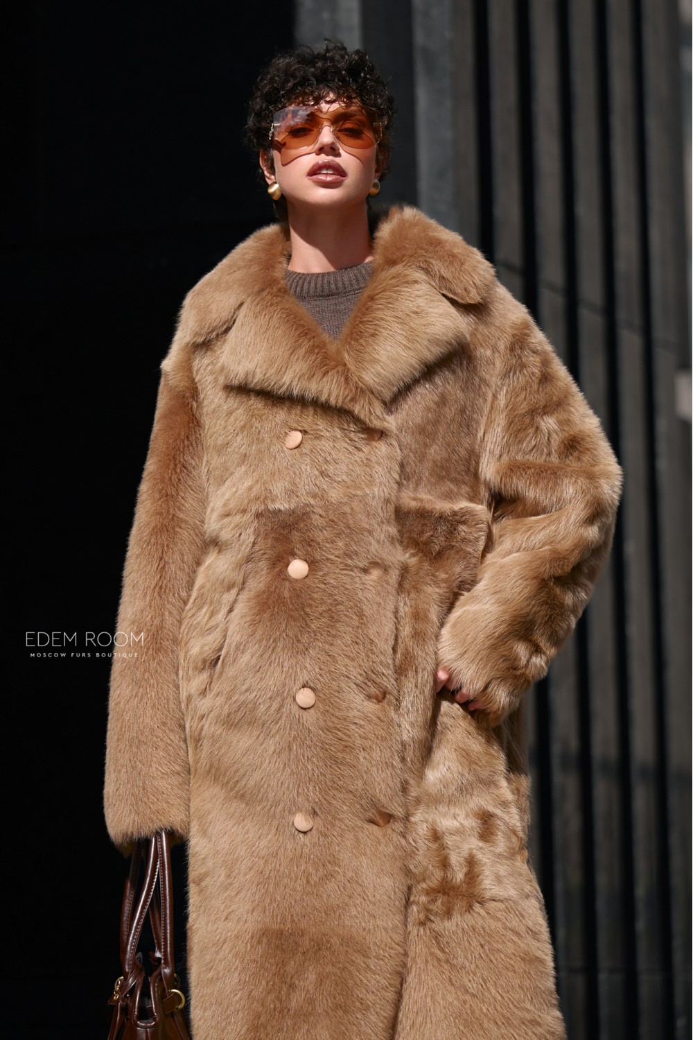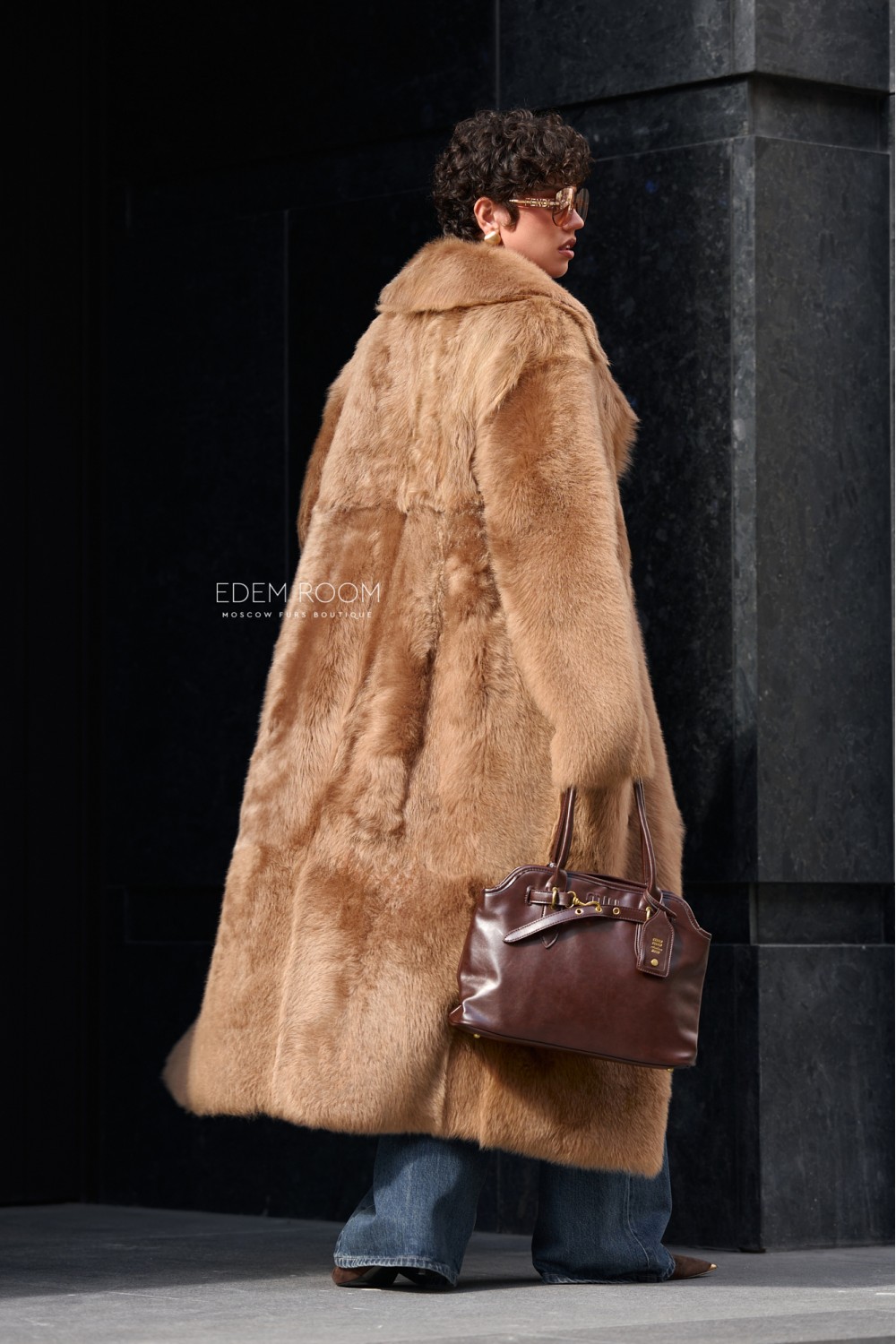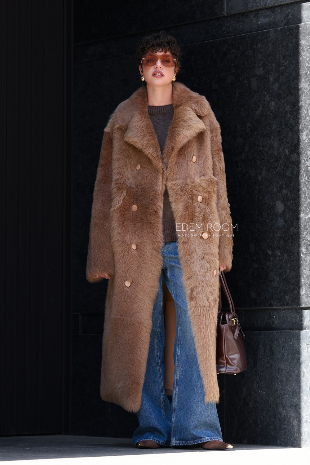 Длина в 115-120 см идеально подходит для создания изящного силуэта, помогая подчеркнуть достоинства фигуры и защищая от холода. Классический цвет кэмел добавляет образу изысканности и универсальности, позволяя сочетать дублёнку с различными элементами гардероба. Главной особенностью данной модели является её двухсторонний фасон, предоставляющий возможность менять образ по желанию, адаптируясь к различным ситуациям и настроению.