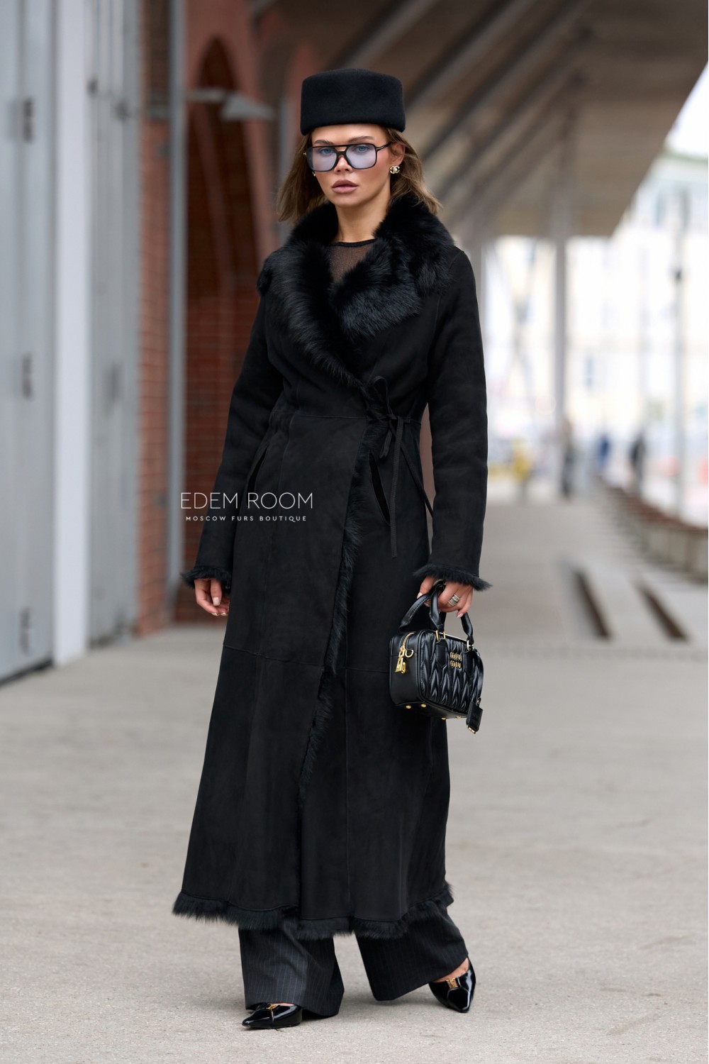 Длинная дублёнка на тоскане MF-10773-130-CH-TS – это воплощение изысканной роскоши и безупречного стиля. Изделие выполнено из высококачественной испанской замшевой кожи, которая отличается особой мягкостью и прочностью, а также благородной матовой текстурой. В качестве утеплителя использована премиальная испанская тоскана — мех с плотным густым ворсом, известный своими уникальными терморегулирующими свойствами, что делает дублёнку невероятно тёплой и комфортной в носке даже в сильные морозы. Длина модели достигает 125–130 см, при этом предусмотрена возможность изменения длины под индивидуальные параметры.