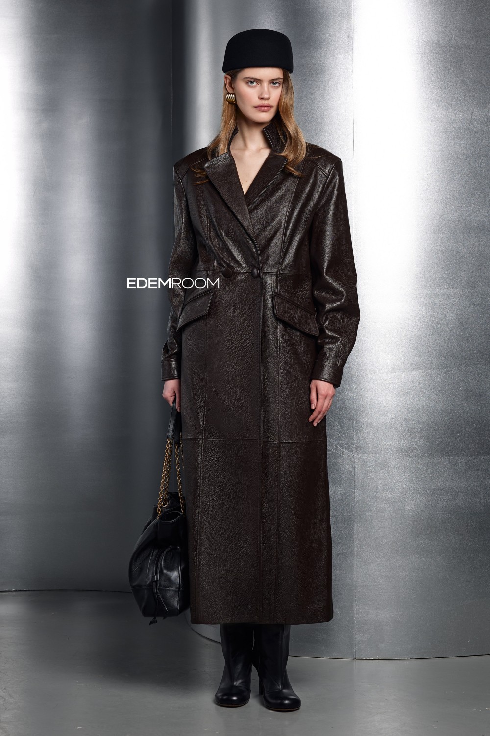 коричневый кожаный тренч MR-201-135-KR