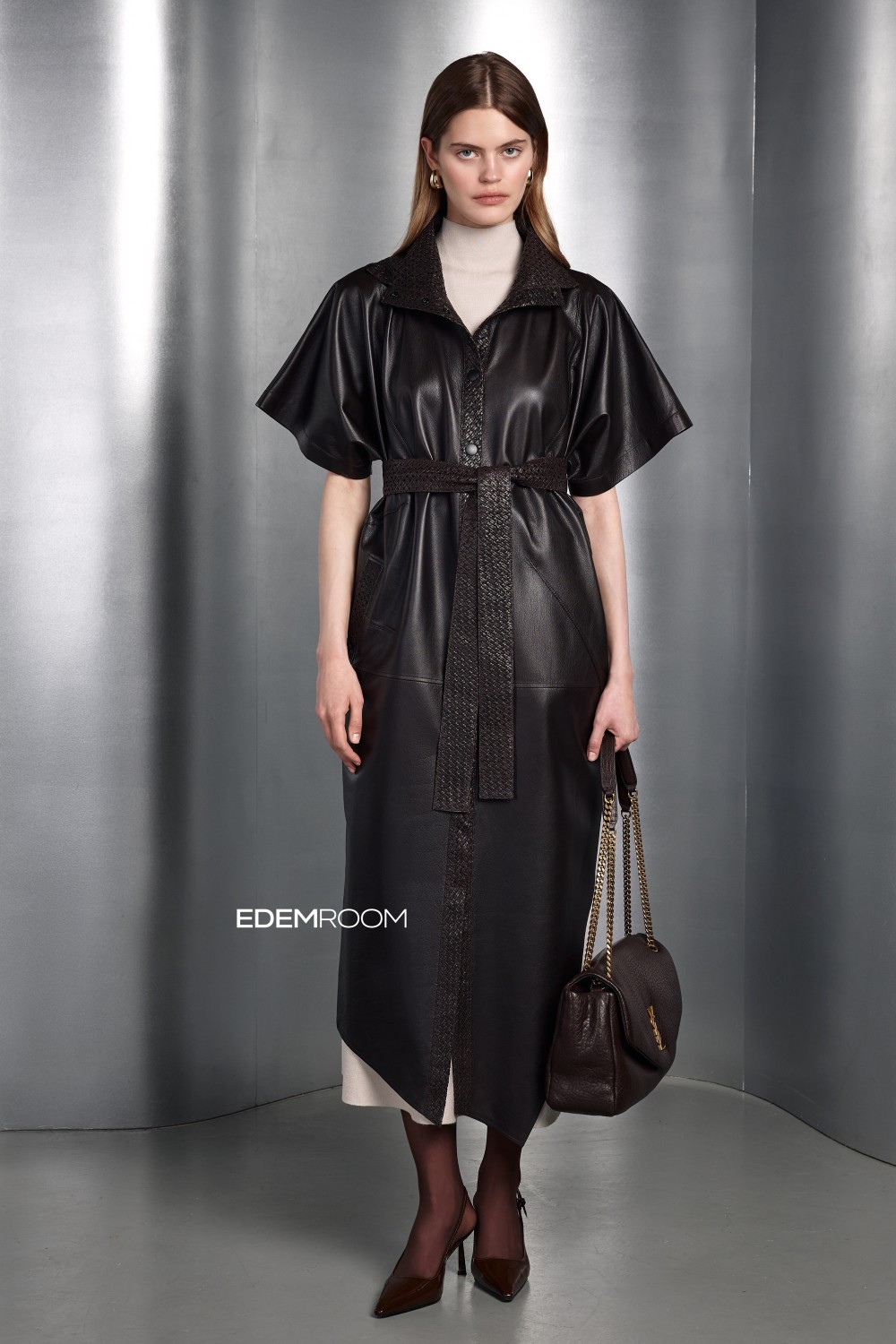 кожаный плащ рубашка DV-6529-130-SH