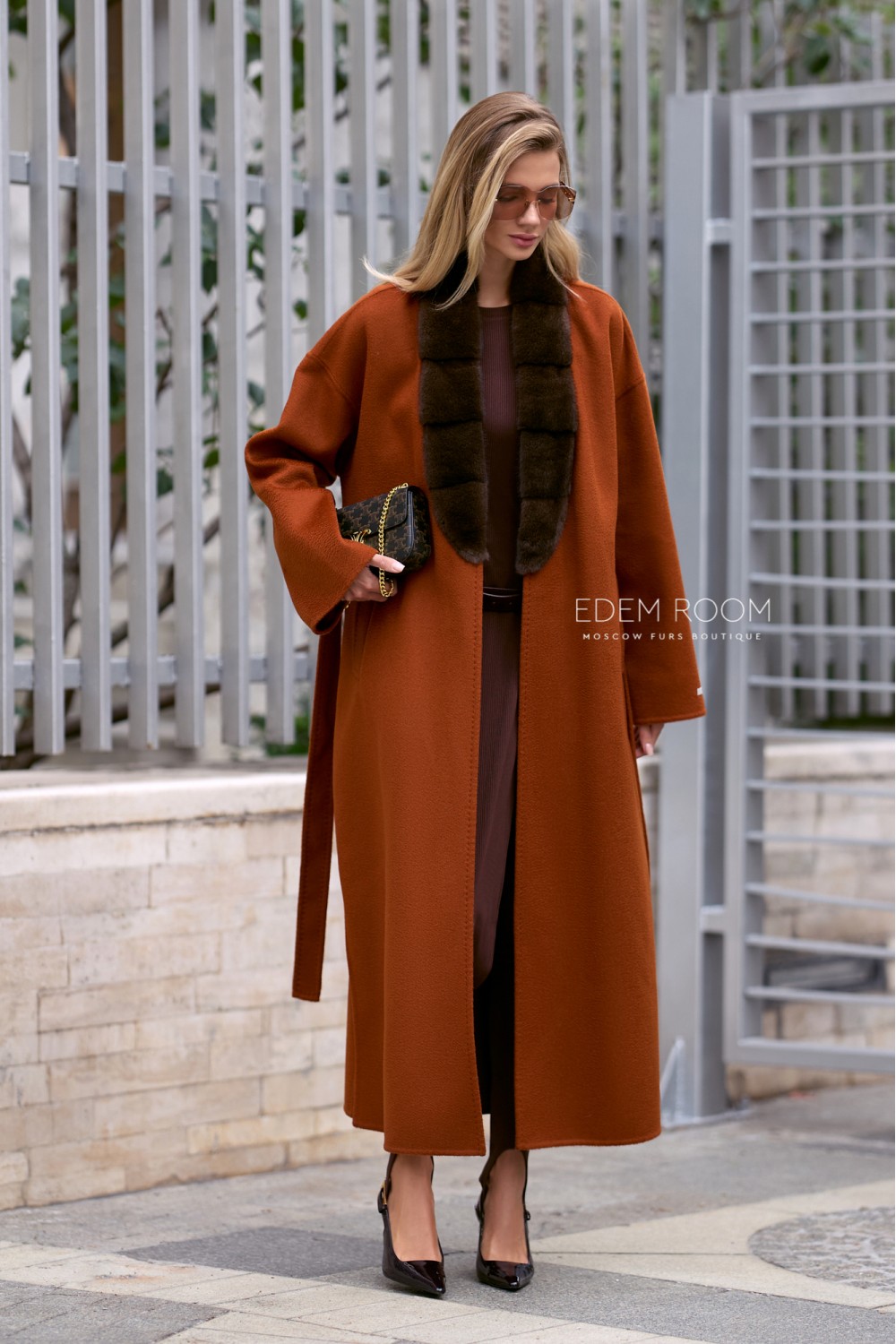 Итальянское пальто с воротником из норки OL-183-135-TR-N