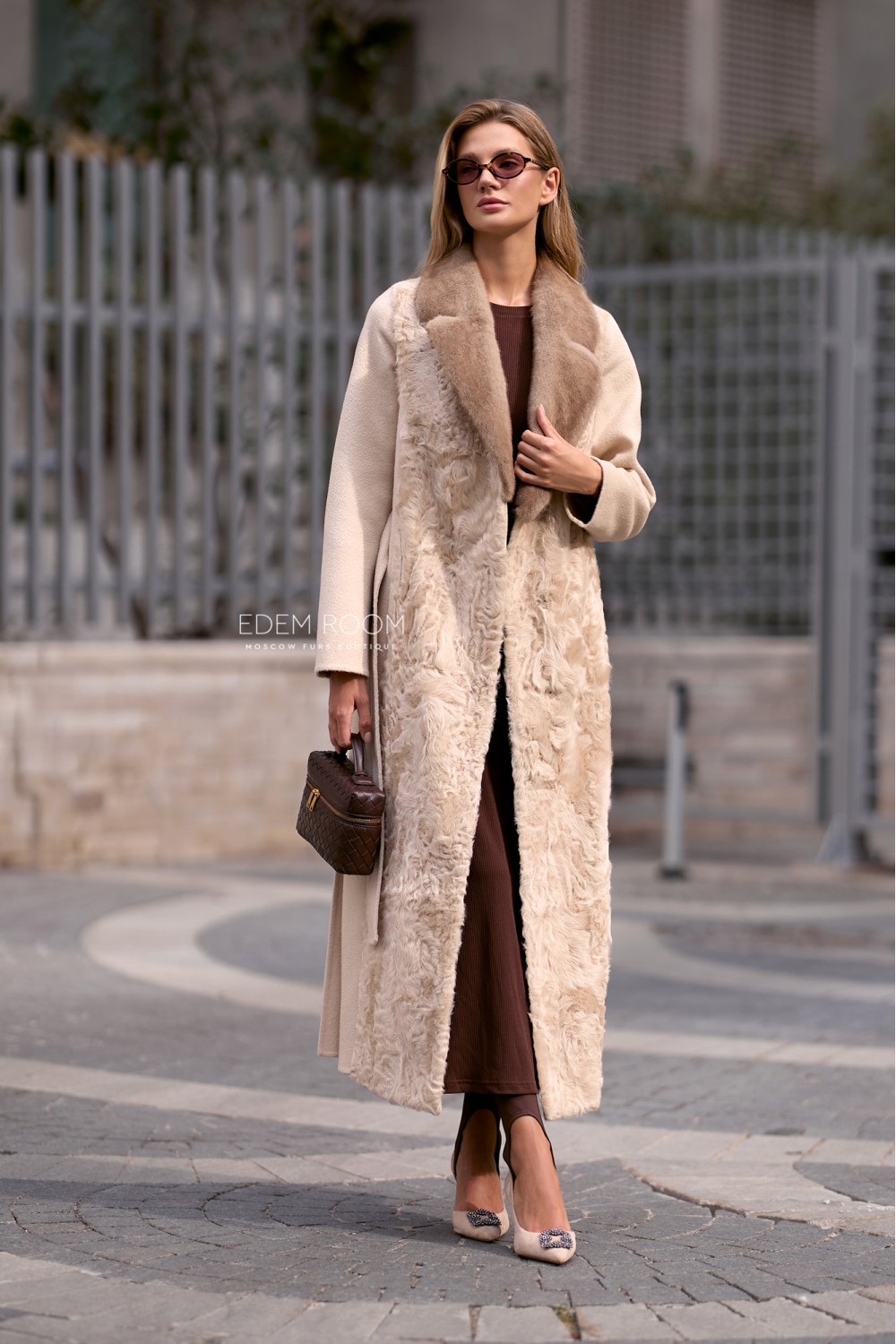 демисезонное пальто с мехом каракульчи OL-52-135-BG-N