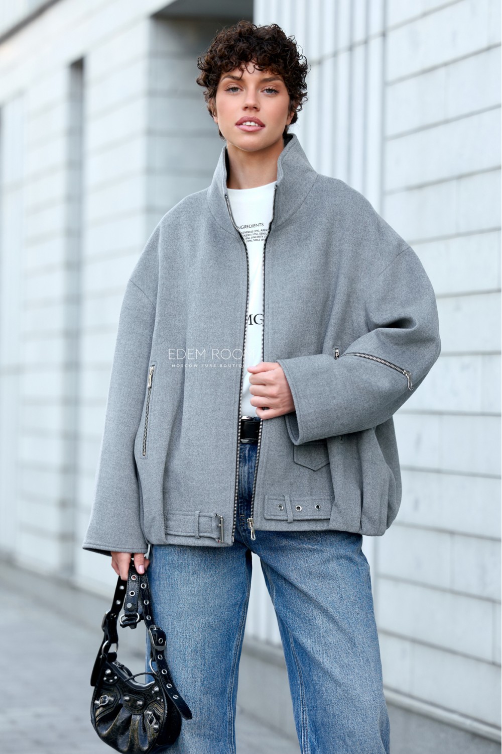 Свободный крой с акцентом на объёмные рукава и воротник-стойку создаёт современный силуэт, а лаконичный дизайн позволяет легко сочетать вещь как с классическими брюками и юбками, так и с джинсами или кэжуал-образами. Серый цвет делает модель универсальной, а дополнительный вариант в оттенке бургундия подойдёт тем, кто ищет яркий акцент в гардеробе.