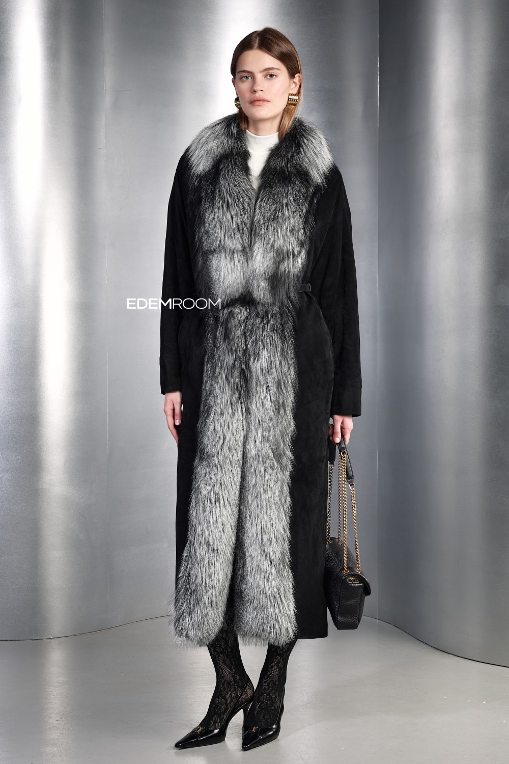 замшевое пальто с мехом чернобурки GR-1523-125-CH-L