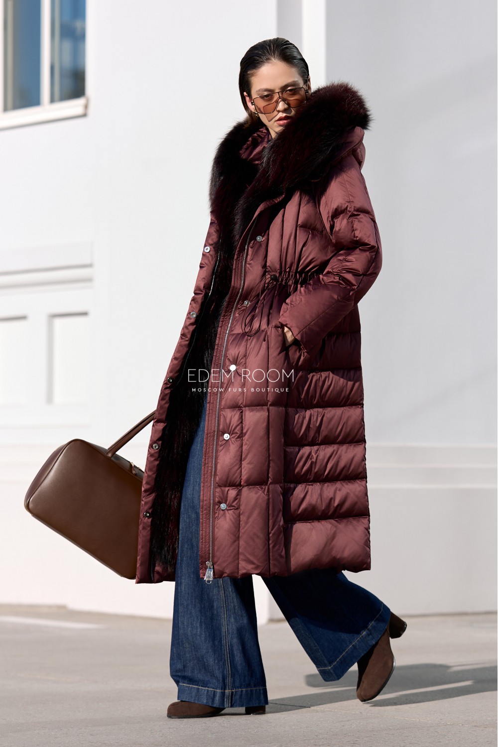 Пуховое пальто с мехом ZX-578-2-120-BR-L — это сочетание утончённого дизайна и максимального комфорта для холодного времени года. Модель выполнена из нежной итальянской ткани с изысканным металлическим отблеском, который придаёт образу благородство и подчёркивает статусность вещи. Материал приятен на ощупь, устойчив к внешним воздействиям и отлично сохраняет форму, обеспечивая долговечность и безупречный внешний вид.