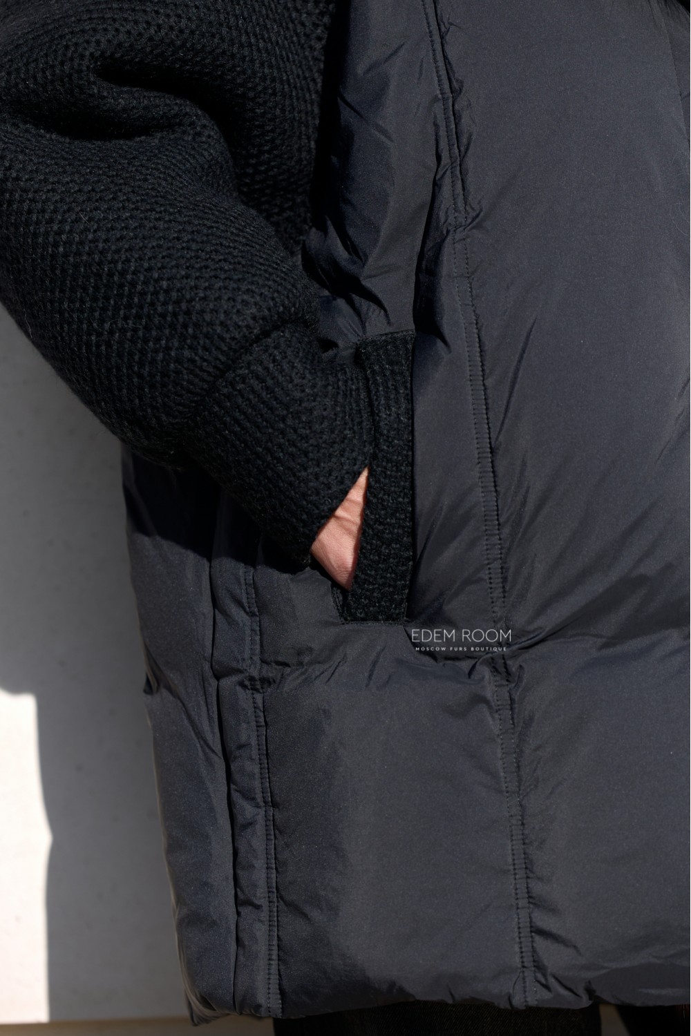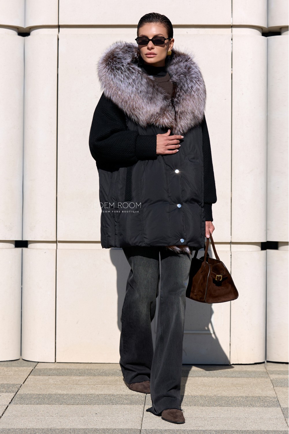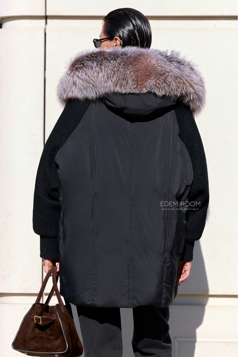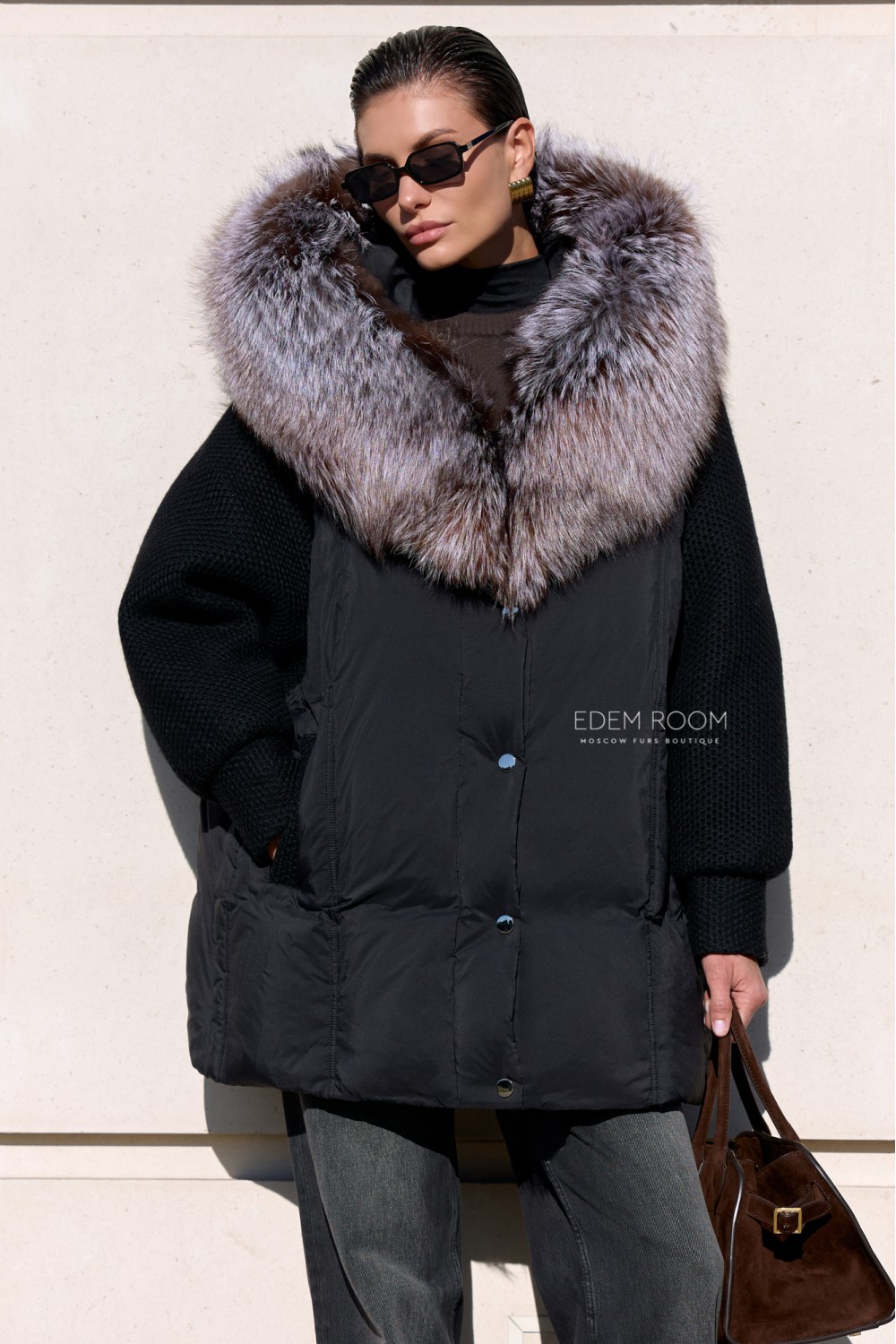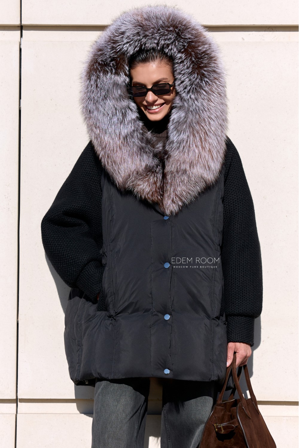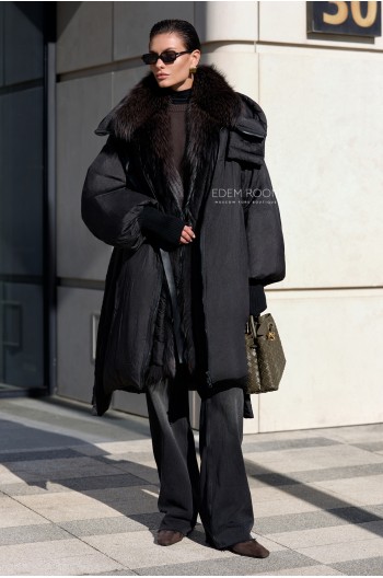 чёрная куртка - пуховик с мехом ZZV-8506-2-85-CH-L