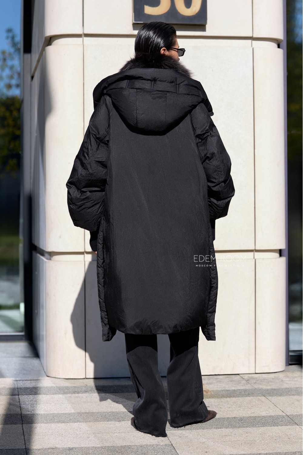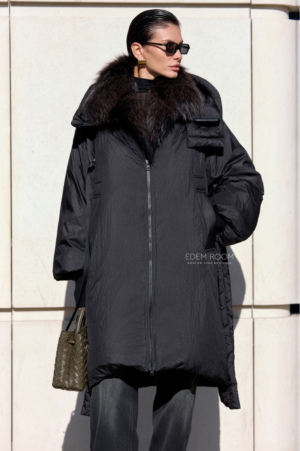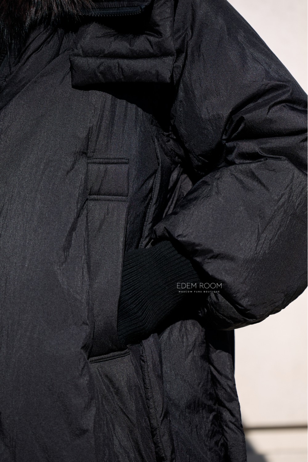 чёрное пуховое пальто с мехом ZZX-23500-2-110-CH-L