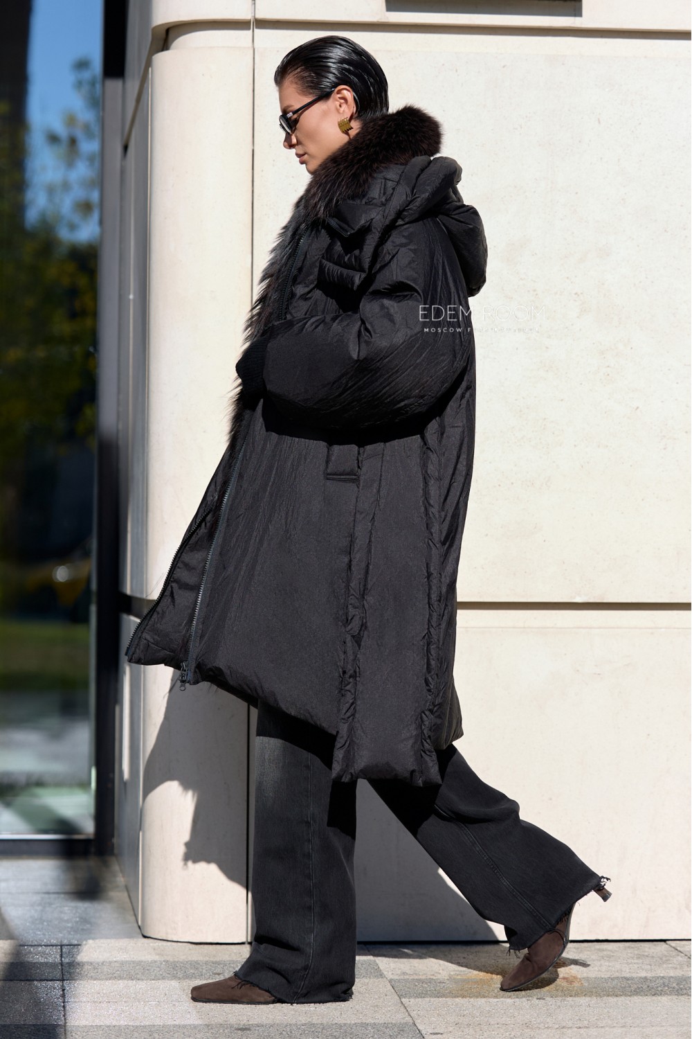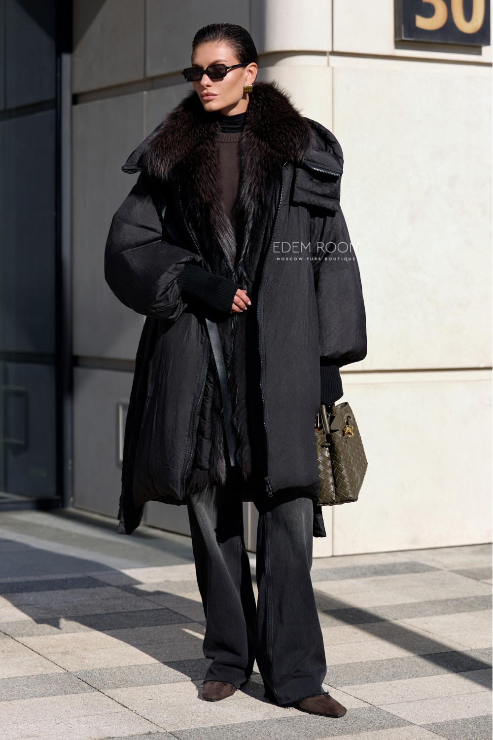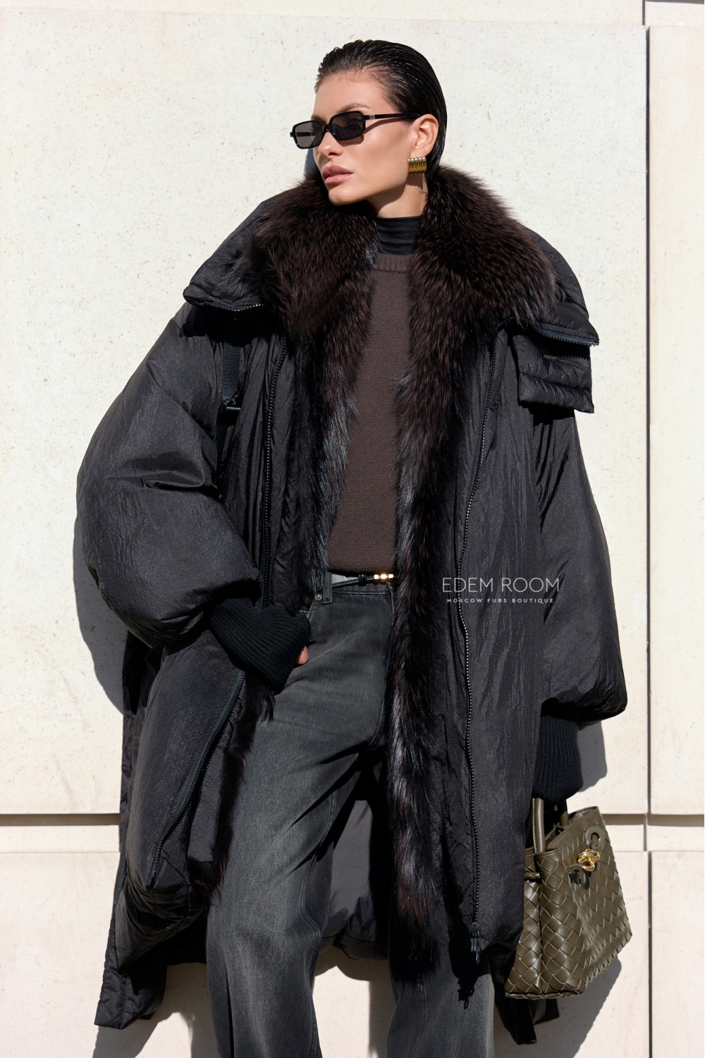 чёрное пуховое пальто с мехом ZZX-23500-2-110-CH-L